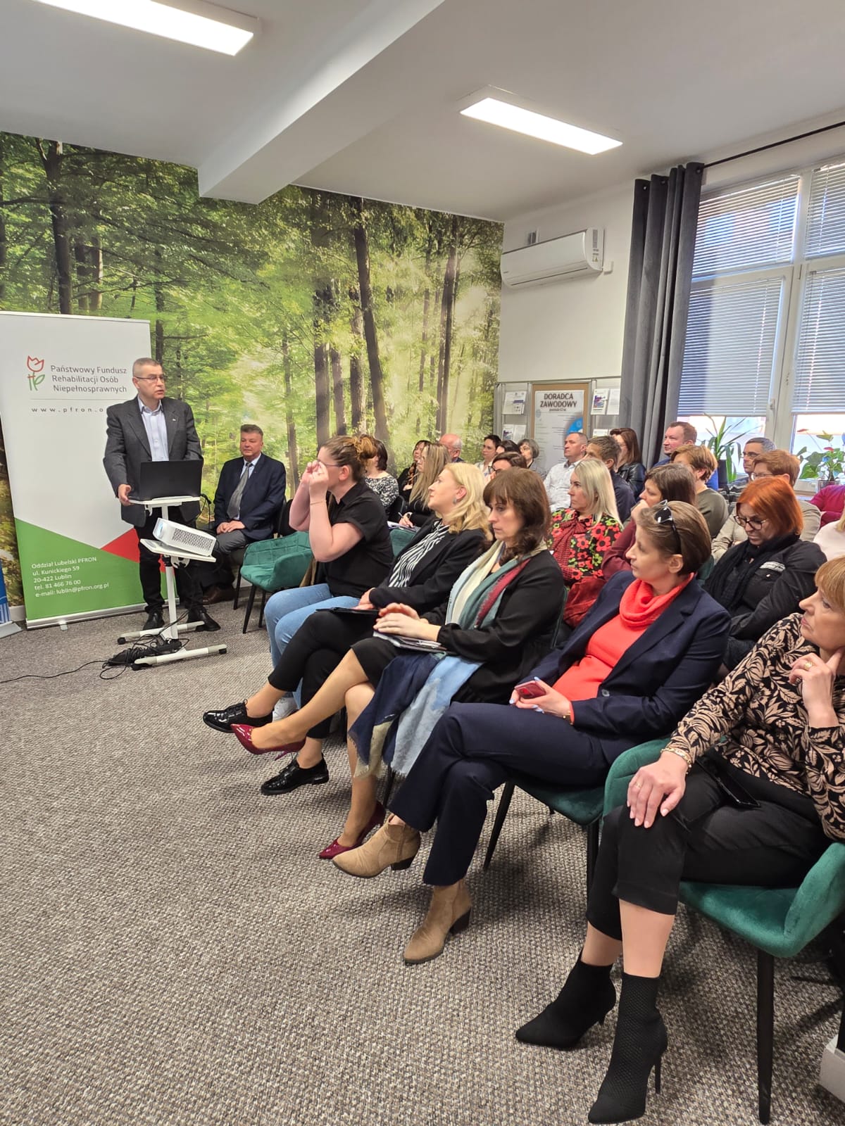 Celem spotkania było przybliżenie pracodawcom aktualnych przepisów oraz możliwości wsparcia związanych z zatrudnianiem osób z niepełnosprawnościami.