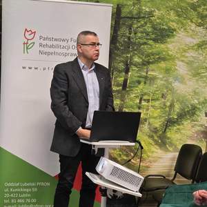 Ryszard Pisula, ekspert ds. wsparcia i współpracy z pracodawcami z Oddziału Lubelskiego PFRON, zaprezentował możliwości uzyskania dofinansowań do wynagrodzeń zatrudnionych przez pracodawców osób niepełnosprawnych, refundacji składek na ubezpieczenie społeczne dla osób niepełnosprawnych prowadzących działalność gospodarczą oraz refundację składek na ubezpieczenie społeczne dla niepełnosprawnych rolników i domowników. - Wsparcie Powiatowego Urzędu Pracy
