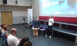 Spotkanie zostało przeprowadzone przez pracownika Oddziału Śląskiego Teresę Saczuk, która zaprezentowała zagadnienia związane ze sprawozdawczością, ogłaszanymi terminami przyjmowania wniosków, wydatkowaniem środków w ramach I transzy, sprawami związanymi z badaniem zgodności oceny formalnej i merytorycznej wniosków pracownika realizatora oraz w zakresie specyfikacji cenowych na badania wstępne i drugie wizyty do eksperta PFRON.