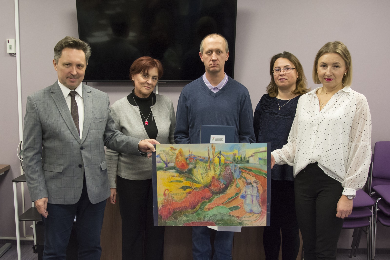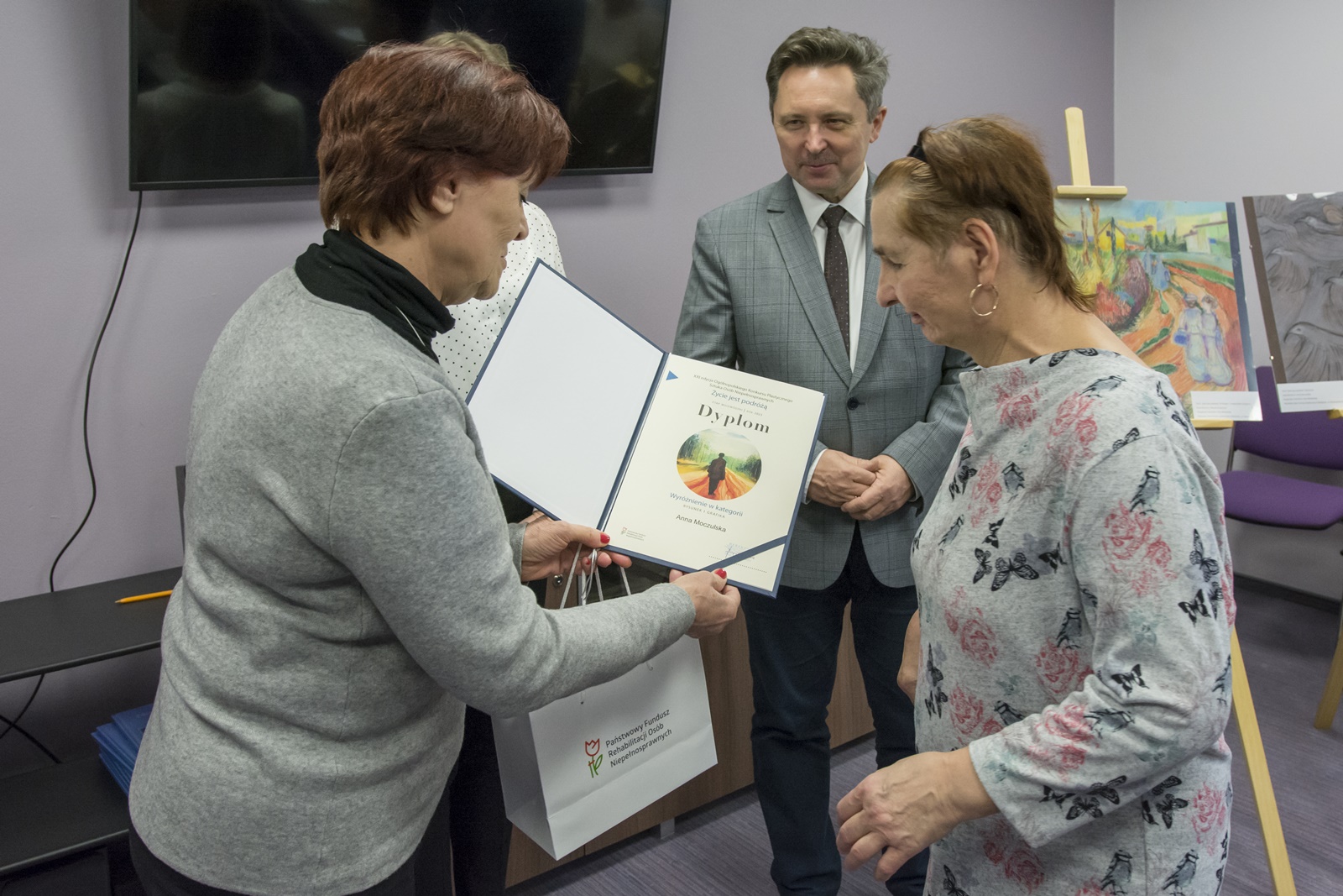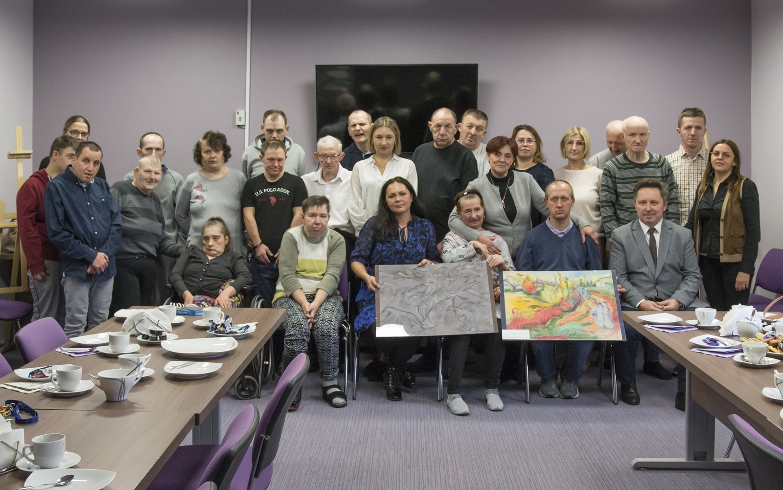 Rozpoczęliśmy spotkania z laureatami XXI edycji Ogólnopolskiego Konkursu Plastycznego ,,Sztuka Osób Niepełnosprawnych’’. W ostatnim czasie Dyrektor Oddziału Podlaskiego PFRON Grażyna Bogdańska odwiedziła uczestników Domu Pomocy Społecznej w Białystoku przy ulicy Baranowickiej 203. Podczas spotkania wręczono dyplomy i nagrody w postaci kart podarunkowych dla laureatów konkursu plastycznego. Zostały ufundowane i przekazane nagrody także dla terapeuty i pracowni plastycznej w której to powstały nagrodzone prace.