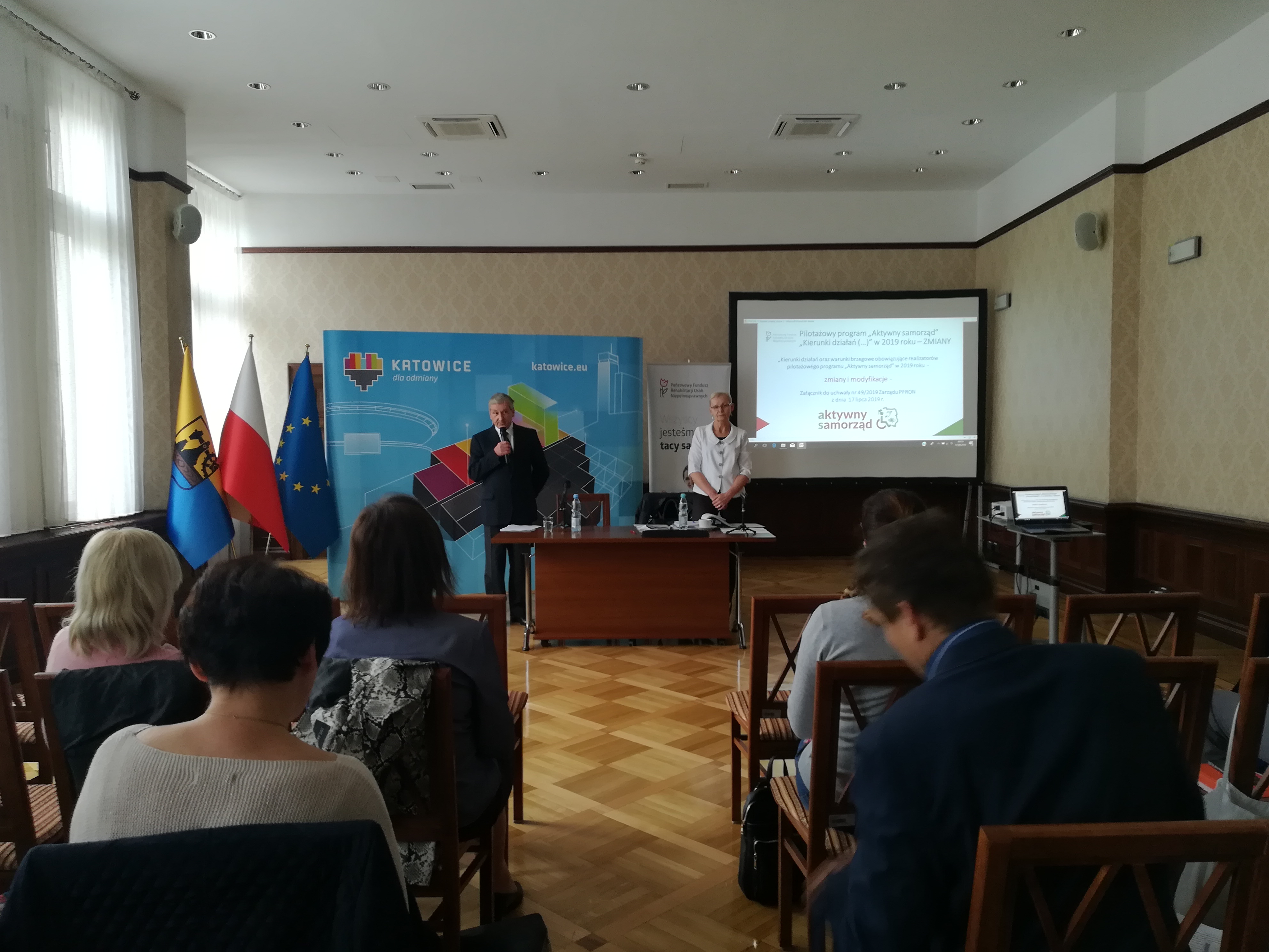 Spotkanie zostało przeprowadzone przez pracownika Oddziału Śląskiego Teresę Saczuk, która zaprezentowała zagadnienia związane ze zmianami w 2019 roku w pilotażowym programie „Aktywny samorząd” i „Kierunki działań (…)” ze szczególnym uwzględnieniem Obszaru C zadanie nr 1 oraz spraw związanych ze sprawozdawczością.