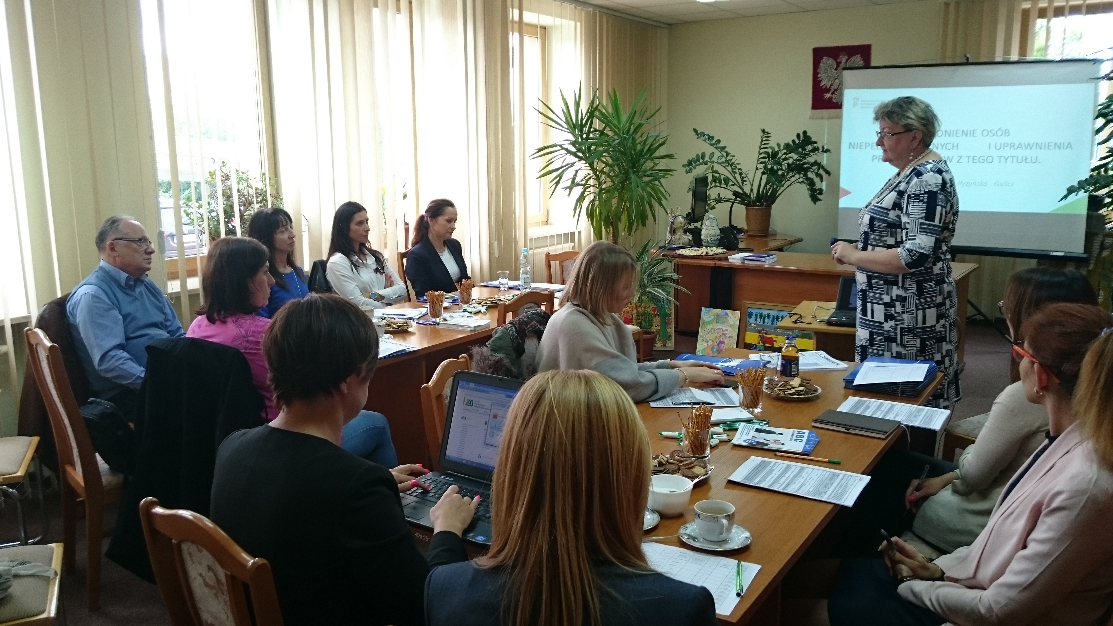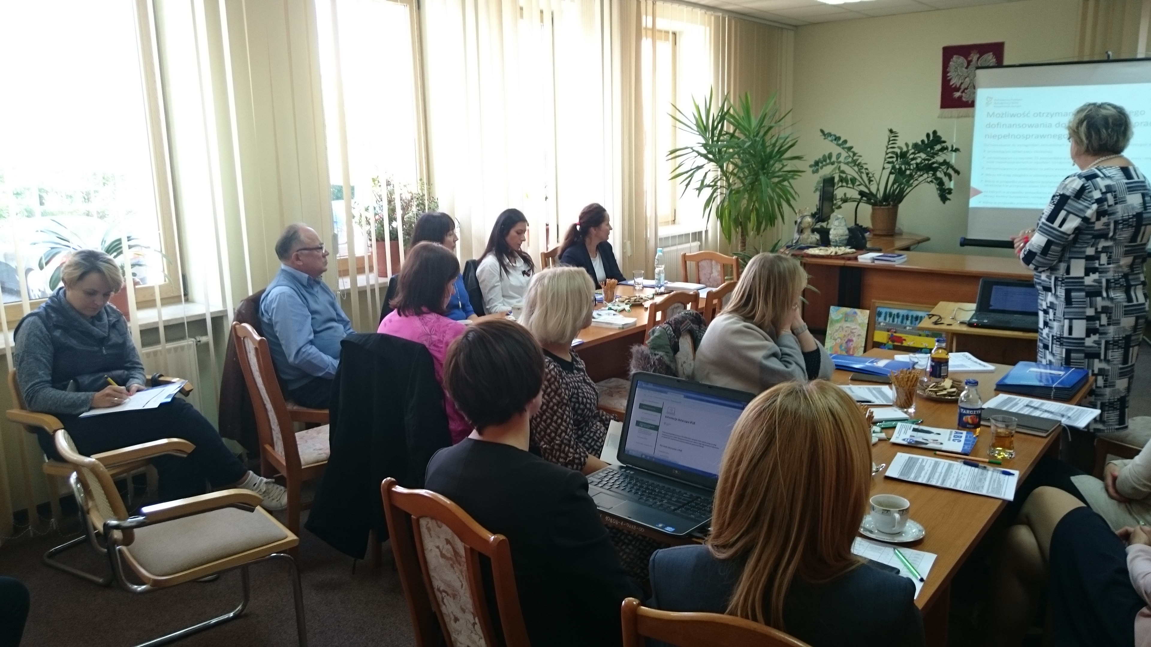 Uczestnikom spotkania, pracownik Oddziału Podlaskiego PFRON Alicja Ryżyńska-Galicz, przedstawiła warunki zatrudnienia osób z niepełnosprawnością oraz formy wsparcia tego zatrudnienia ze środków PFRON. Jednym z zagadnień było zapoznanie z obowiązującymi orzeczeniami o stopniu niepełnosprawności, wydanymi przez różne instytucje i sposobem przekładania się tych orzeczeń. Najszerzej omówiono dofinansowanie do wynagrodzeń pracowników z niepełnosprawnością ze szczególnym uwzględnieniem obowiązującej dokumentacji wymaganej przy tej formie pomocy.