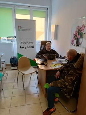 Mieszkańcy Olsztyna podczas zebrania mogli porozmawiać z pracownikami o programach realizowanych przez Państwowy Fundusz Rehabilitacji Osób Niepełnosprawnych.
