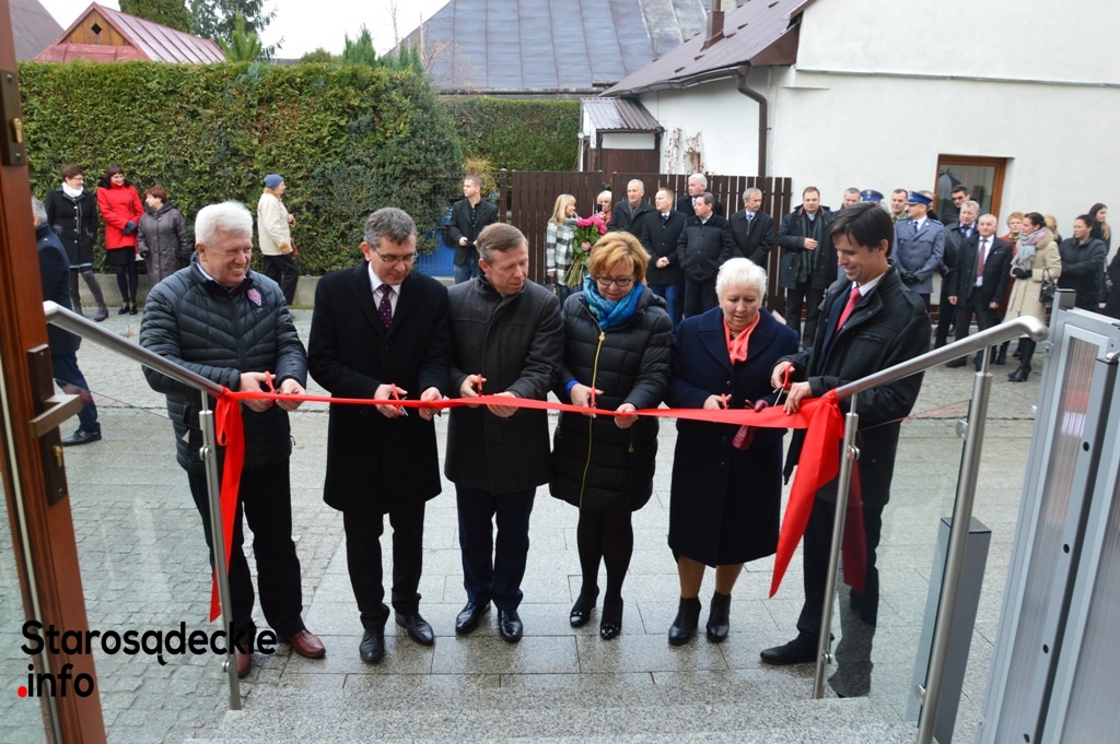 W uroczystościach udział wzięli Wojewoda Małopolski Piotr Ćwik, który oficjalnie przekazał budynek gminie, Burmistrz Starego Sącza Jacek Lelek, wójt Łącka Jan Dziedzina, wójt Łabowej Marek Janczak oraz liczni przedstawiciele gminnych jednostek.