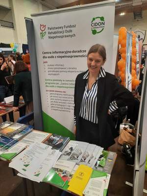 Podczas targów bardzo dużym zainteresowaniem cieszyły się usługi doradcze CIDON dot. Wypożyczalni Technologii Wspomagających. Specjalistka ds. CIDON Kinga Pieczynia udzielała informacji na temat doboru sprzętu oraz sposobu składania wniosków w Systemie Obsługi Wsparcia do Wypożyczalni Technologii Wspomagających dla Osób z Niepełnosprawnościami.