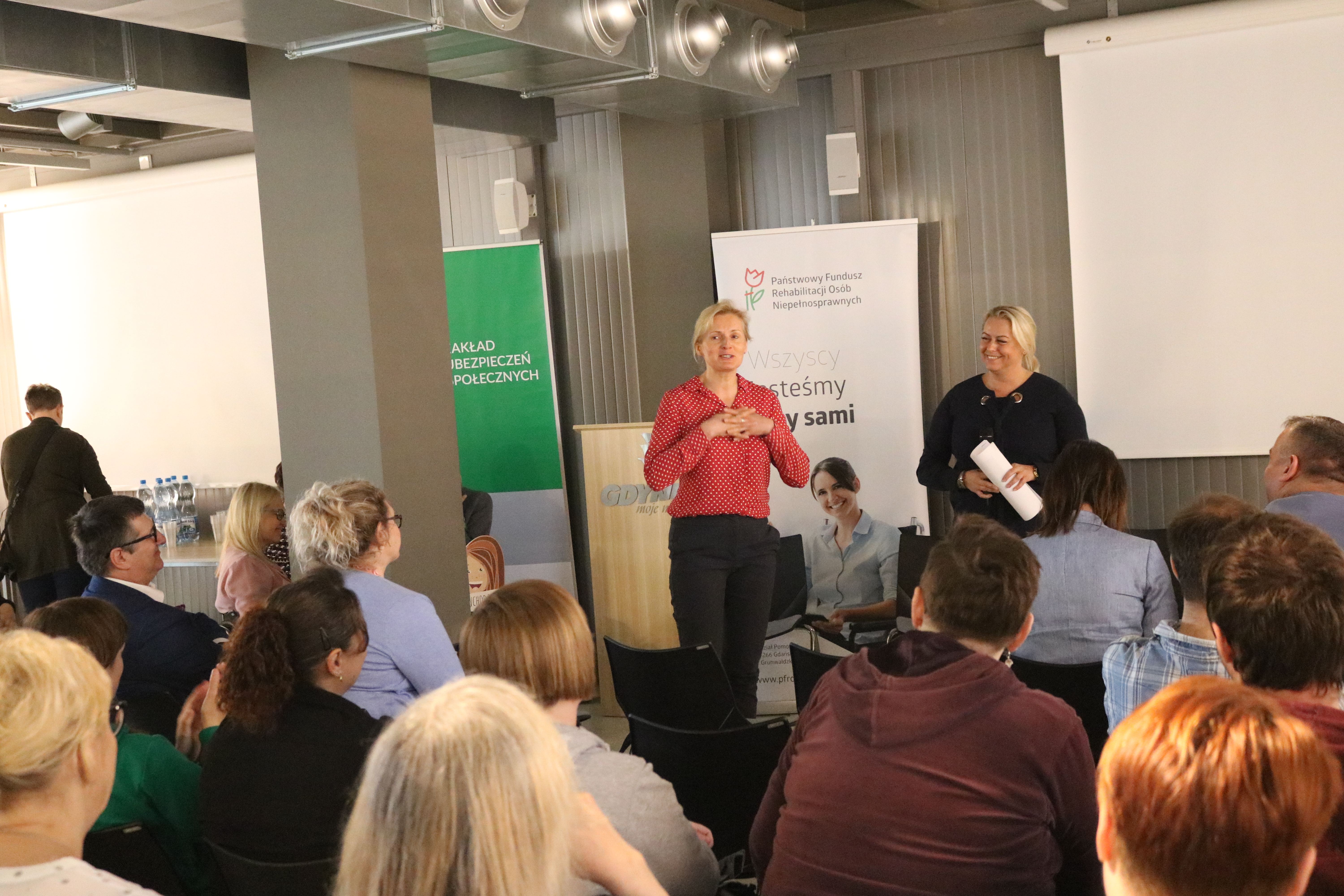 Dzień Osób z Niepełnosprawnościami uroczyście zainaugurowali: Dyrektor Oddziału ZUS w Gdańsku Aneta Pawłowska, Dyrektor Laboratorium Innowacji Społecznych Aleksandra Markowska oraz Dyrektor Oddziału Pomorskiego PFRON Dariusz Majorek.