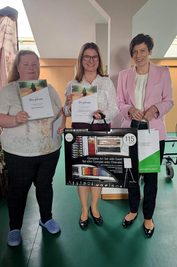 Nagrodę główną osobiście wręczyła laureatce Anna Skupień, dyrektor Oddziału Wielkopolskiego PFRON. Jednocześnie pogratulowała Elżbiecie Mikołajewicz talentu, kreatywności oraz niezwykłej wrażliwości. Wyraziła także uznanie dla Pani Agnieszki Materny, kierownik ŚDS-u we Włoszakowicach oraz całego zespołu placówki za zaangażowanie w proces terapeutyczny każdego z uczestników i umiejętne wyławianie talentów.
