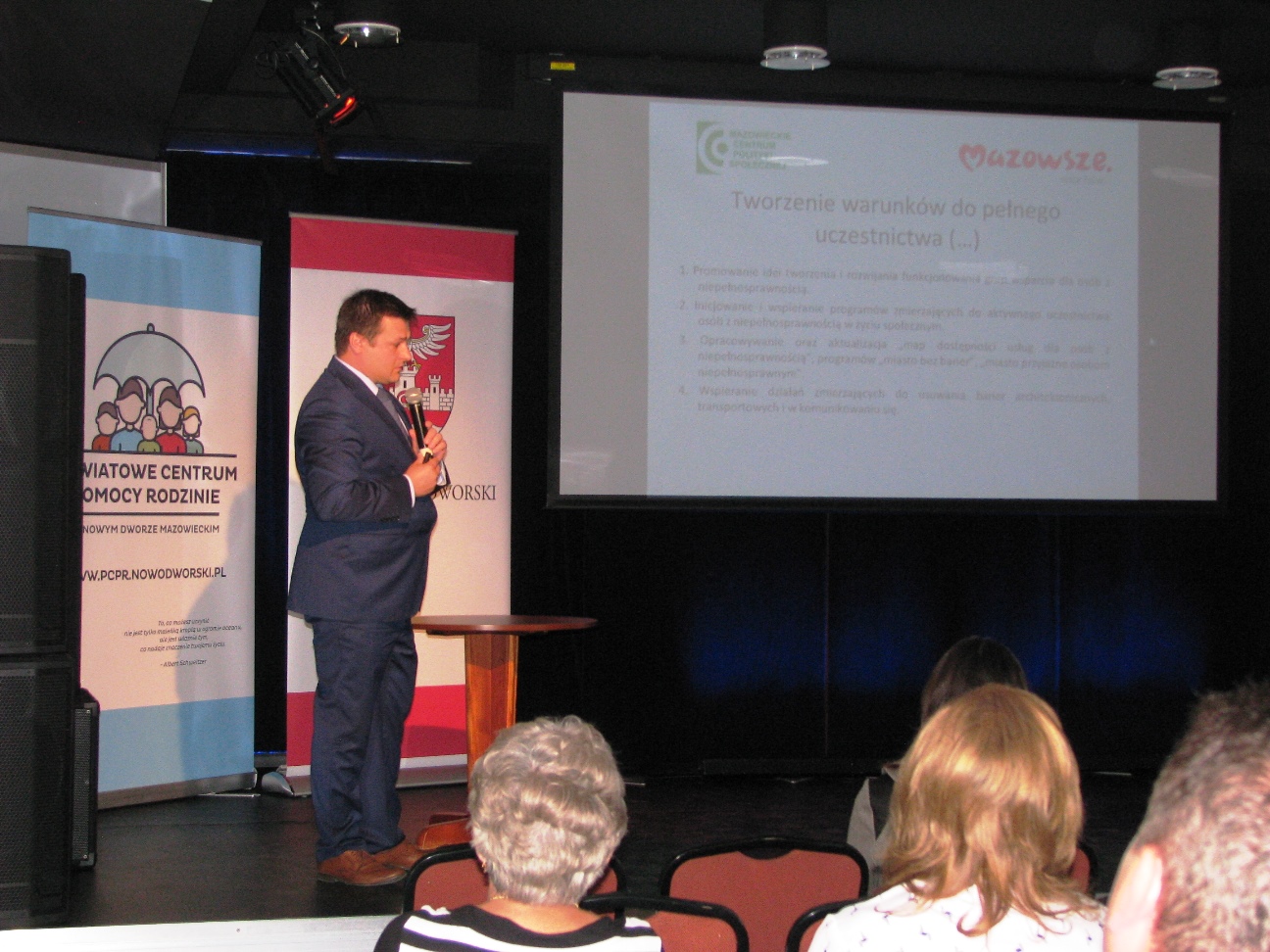 Podczas konferencji Artur Pozorek – Dyrektor Mazowieckiego Centrum Polityki Społecznej omówił Wojewódzki Program Wyrównywania Szans Osób Niepełnosprawnych i Przeciwdziałania Ich wykluczeniu społecznemu oraz opisał tzw. Małe Granty – możliwość uzyskania dofinansowania do działalności na rzecz osób niepełnosprawnych.