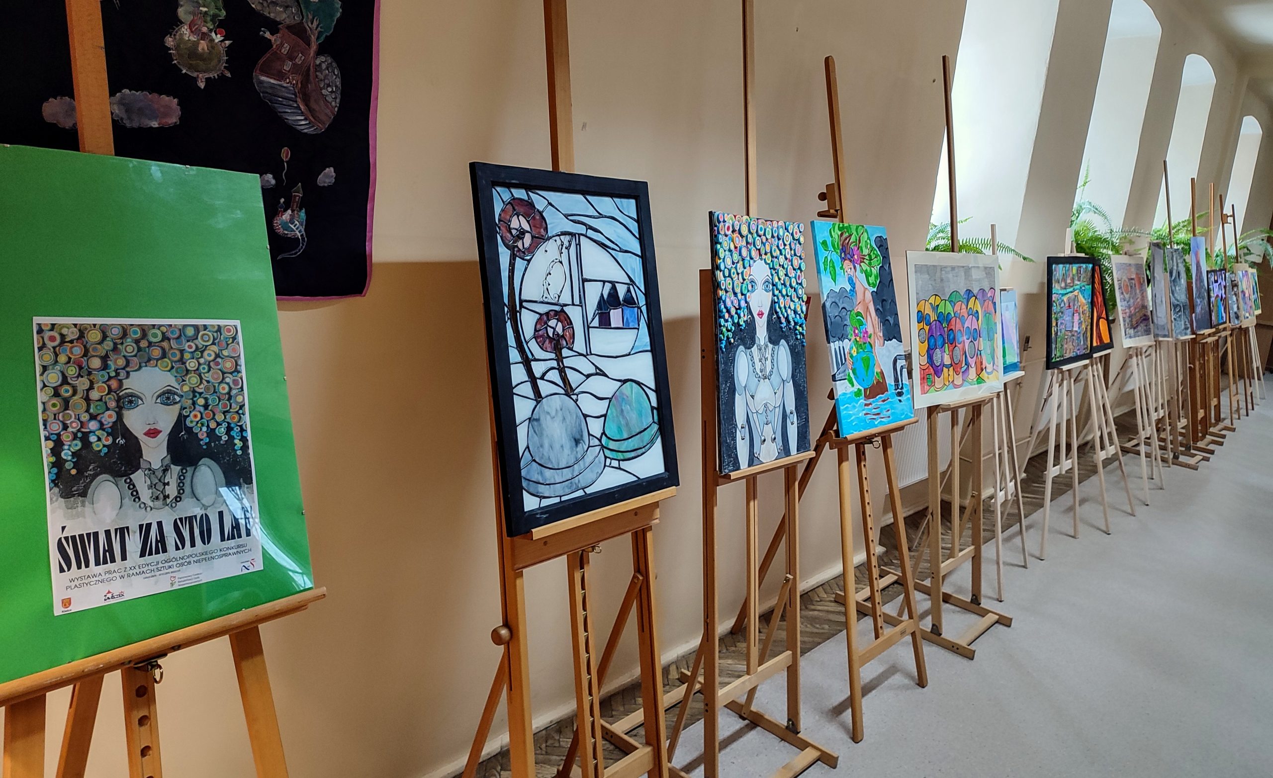 Pokonkursowa wystawa „Świat za sto lat” prezentowana jest w siedzibie Pedagogicznej Biblioteki Wojewódzkiej w Kielcach. Ekspozycja przedstawia 20 prac plastycznych nagrodzonych i wyróżnionych w wojewódzkim etapie XX edycji Ogólnopolskiego Konkursu Plastycznego w ramach Sztuki Osób Niepełnosprawnych organizowanego przez PFRON. Dzieła artystów urzekają swoją oryginalnością, pomysłowością i wrażliwością. Oceniane były w 5 kategoriach: Malarstwo i witraż, Rzeźba kameralna i płaskorzeźba, Rysunek i grafika, Tkanina i aplikacja oraz Fotografia. Prace można oglądać w holu Biblioteki na I piętrze do końca marca 2023 r. Dziękujemy pracownikowi Biblioteki panu Łukaszowi Kwietniowi za pomoc w zorganizowaniu przedsięwzięcia. To już kolejne miejsce, w którym prezentowane są prace artystów z niepełnosprawnościami. Wcześniej nagrodzone prace były wystawiane w Domu Kultury Zameczek w Kielcach.