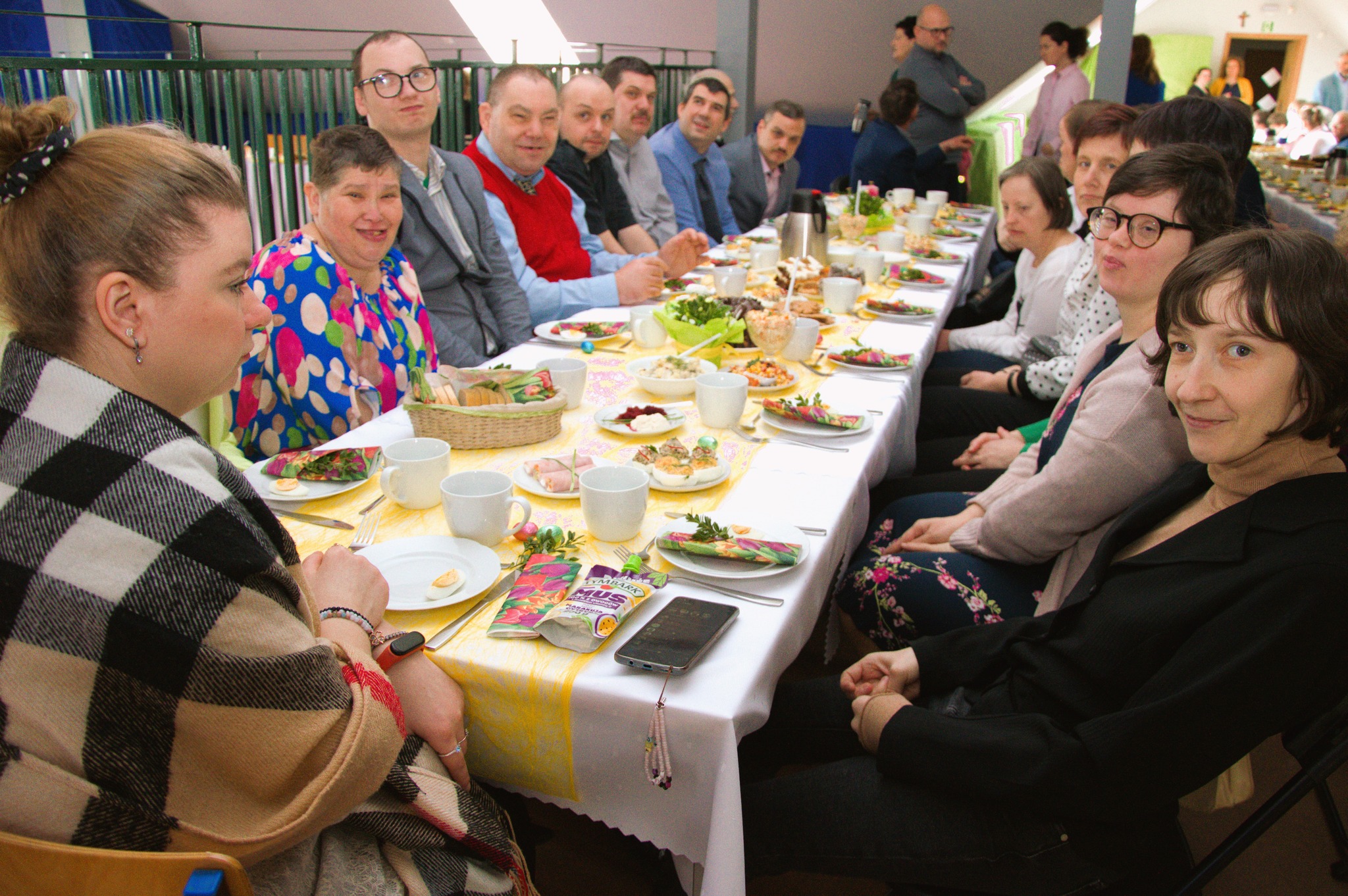 W pięknie przystrojonej sali przygotowane zostały stoły zastawione przepysznymi potrawami. Po śniadaniu podopieczni ośrodka wystąpili z wyjątkowym koncertem.