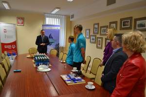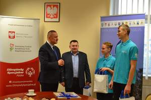 Podczas wizyty trener zawodników z Publicznego Specjalnego Katolickiego Ośrodka Edukacyjno-Wychowawczego w Kruzach - Piotr Gaj, który przygotowywał swoich podopiecznych do Igrzysk, wręczył staroście Andrzejowi Abako ramkę ze zdjęciami zawodników Olimpiad Specjalnych Warmińsko-Mazurskich wykonanych w trakcie sportowych przygotowań do mistrzostw. W spotkaniu w starostwie uczestniczyła również dyrektor placówki Agata Milewska oraz dyrektor Warmińsko-Mazurskich Olimpiad Specjalnych – Ulana Stacewicz.