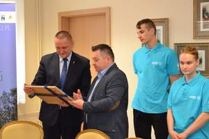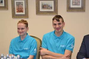 Małgorzata Jezierska i Sławomir Zając - zawodnicy klubu „Tęcza Kruzy” przed wylotem na Igrzyska w Abu Dhabi 7 marca 2019 r. zostali pożegnani w siedzibie Starostwa Powiatu Olsztyńskiego.