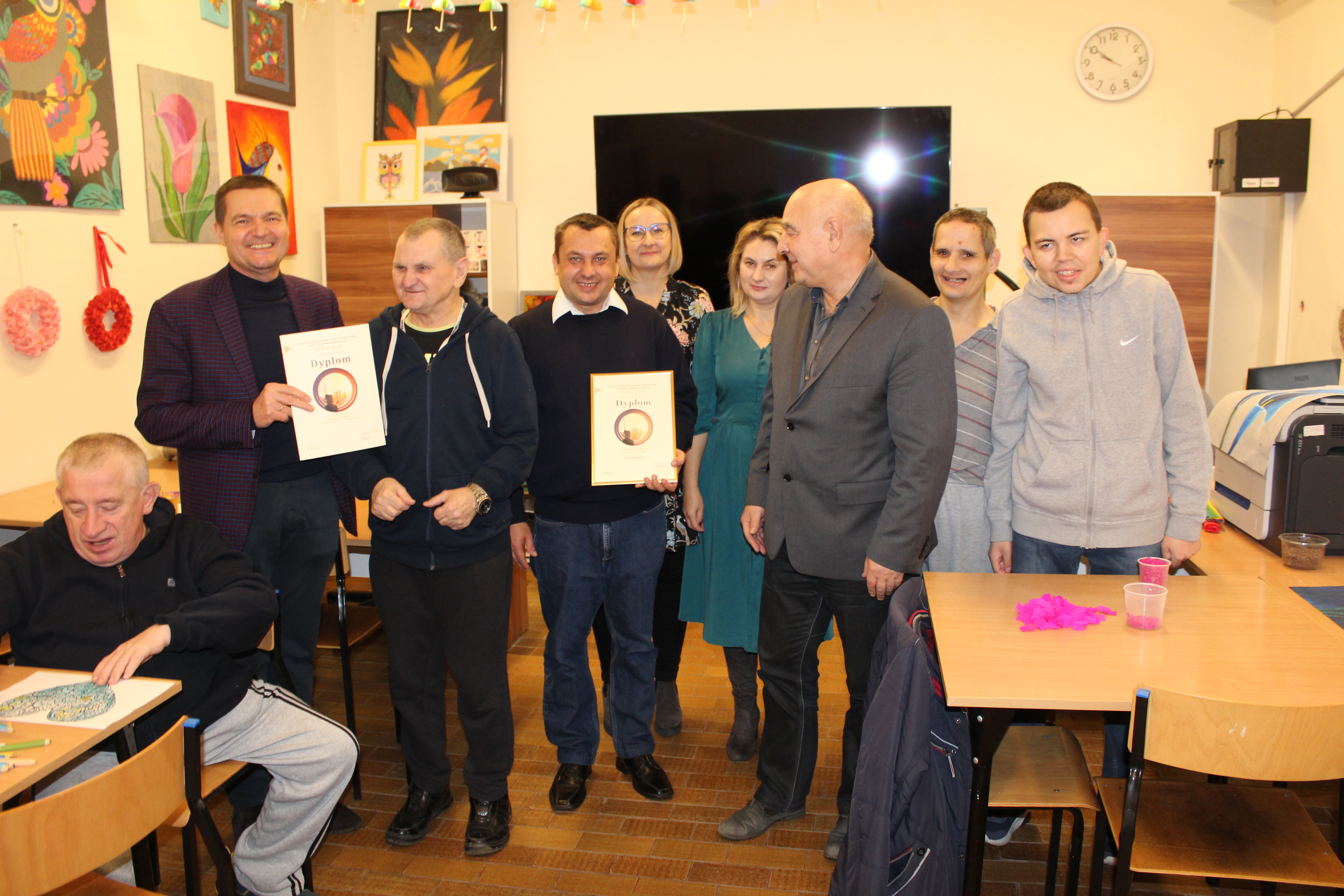 „Sztuka Osób Niepełnosprawnych” to największy w Polsce przegląd dorobku artystycznego placówek terapeutycznych dla osób niepełnosprawnych. W ostatnich latach do konkursu zgłaszano około 2 000 prac rocznie. Kuźnią talentów jest miasto Świdnik, tam w dwóch placówkach, które mieliśmy przyjemność wczoraj odwiedzić, powstały prace na Jubileuszową edycję konkursu pn.: „Świat za 100 lat”. Laureatom konkursu etapu wojewódzkiego nagrody i dyplomy wręczyli Ryszard Dados Zastępca Dyrektora Oddziału Lubelskiego PFRON oraz Anna Sztal odpowiedzialna między innymi za prawidłowe przeprowadzenie konkursu i wybór najpiękniejszych prac.