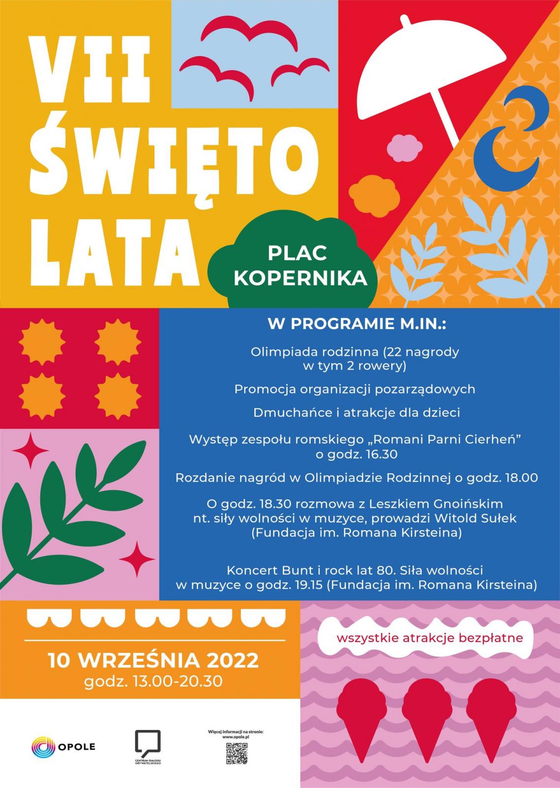 Święto Lata to szeroki wachlarz atrakcji dla całej rodziny, m. in. Występy taneczne, pokazy sztuk walki czy Olimpiada Rodzinna, w której do wygrania są aż 22 nagrody, w tym 2 rowery. Wydarzenie rozpocznie się o godzinie 13:00, a zakończy o godzinie 20:30.