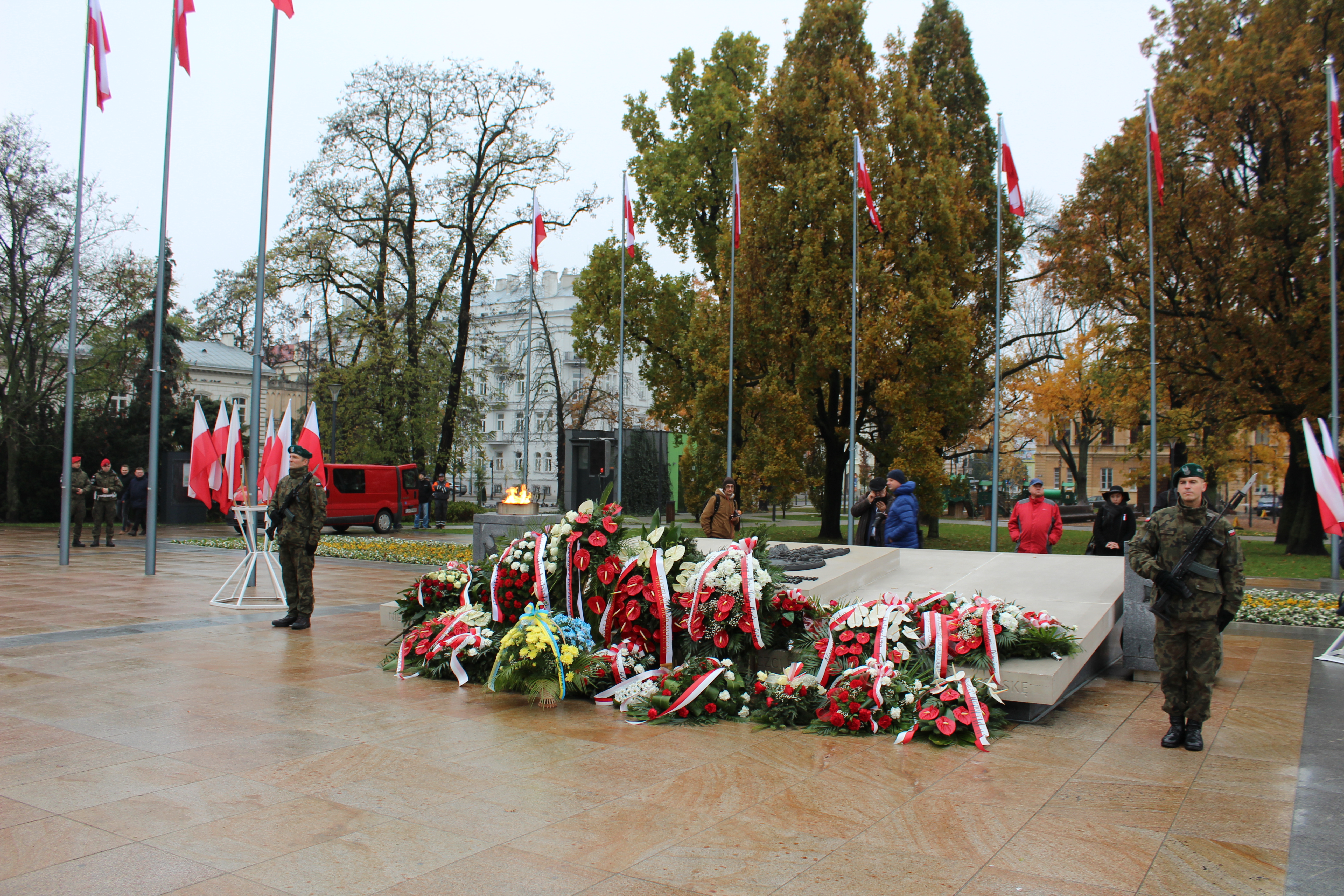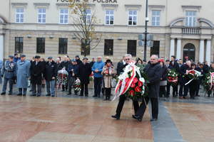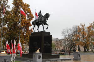 Obchody 101. Rocznicy Odzyskania Niepodległości w Lublinie rozpoczęły się od złożenia kwiatów pod pomnikiem Marszałka Józefa Piłsudskiego na Placu Litewskim i uroczystej sesji Rady Miasta Lublin w Trybunale Koronnym. W imieniu Państwowego Funduszu Rehabilitacji Osób Niepełnosprawnych kwiaty złożyli Jerzy Dębski Dyrektor Oddziału Lubelskiego PFRON oraz Sławomir Drzewiecki pracownik Oddziału Lubelskiego PFRON.
