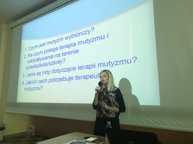 Podczas sympozjum Monika Andrzejewska – psycholog, psychoterapeuta, współwłaściciel Centrum Tarapii Mutyzmu opowiedziała o mutyzmie wybiórczym – diagnozie i przebiegu oddziaływań terapeutycznych. Temat afazji, jej objawy, przyczyny i rokowania omówione zostały przez Sylwię Dominik – neurologopeda, oligofrenopedagoga Specjalnego Ośrodka Szkolno – Wychowawczego w Nowym Sączu.