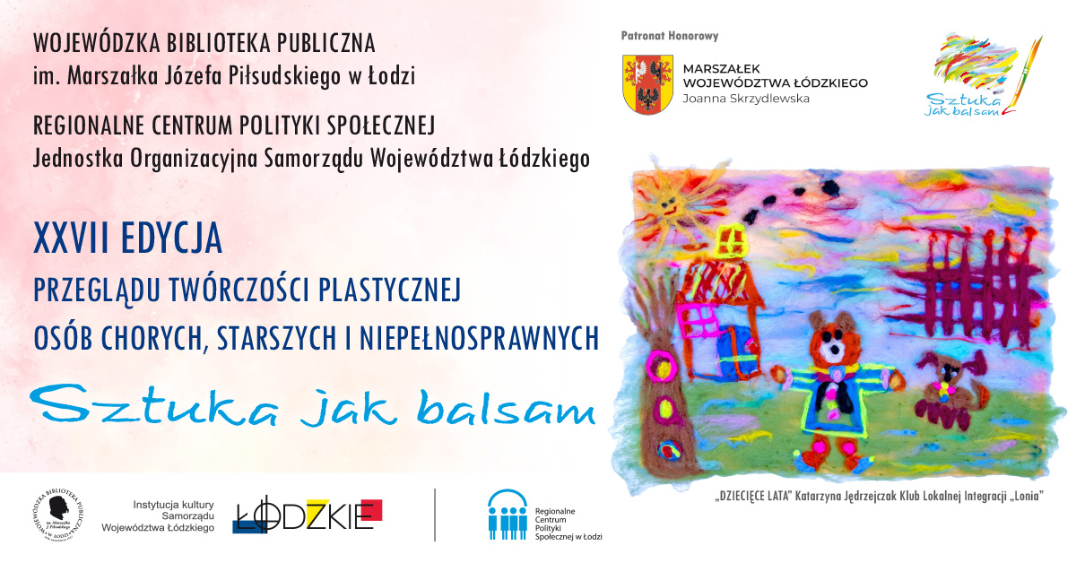Przypominamy, że tylko do 23 kwietnia (czwartek) trwa nabór prac do XXVII edycji Przeglądu Twórczości Plastycznej Osób Chorych, Starszych i Niepełnosprawnych „Sztuka jak balsam”.
