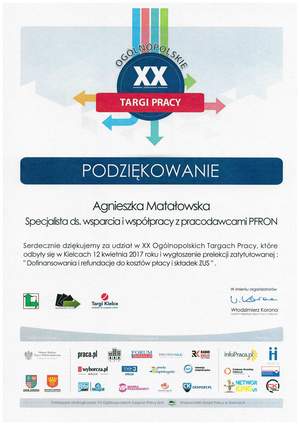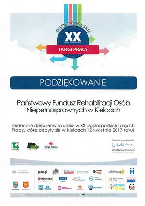 W dniu 12 kwietnia 2017 r. w Targach Kielce S.A. odbyły się jubileuszowe XX Ogólnopolskie Targi Pracy, w których tłumnie uczestniczyli z jednej strony bezrobotni i poszukujący pracy, a z drugiej pracodawcy oferujący pracę, jednostki szkolące oraz firmy doradcze - w sumie około 90 wystawców.