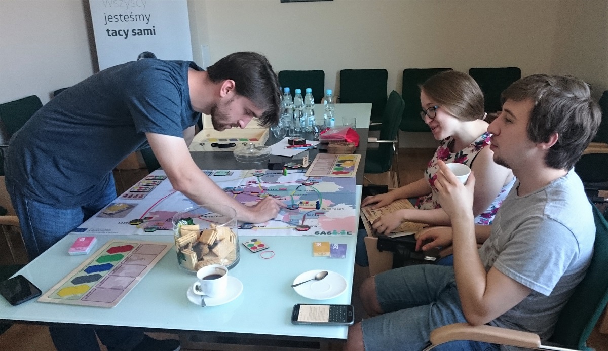 Testy gry planszowej „On the way – Latający reporterzy” odbyły się dzięki stałej współpracy Oddziału Małopolskiego PFRON ze Stowarzyszeniem MANKO. Gra jest podróżą po 30 miastach europejskich, która jednocześnie pobudza wyobraźnię, ćwiczy opracowanie strategii oraz integruje. Jest narzędziem edukacyjnym stworzonym z myślą o seniorach i osobach z niepełnosprawnościami, dostosowana do potrzeb osób niedowidzących. Gra dostępna w języku polskim, niemieckim, rumuńskim oraz litewskim powstała w ramach międzynarodowego projektu SASME, którego liderem i inicjatorem jest Stowarzyszenie MANKO.