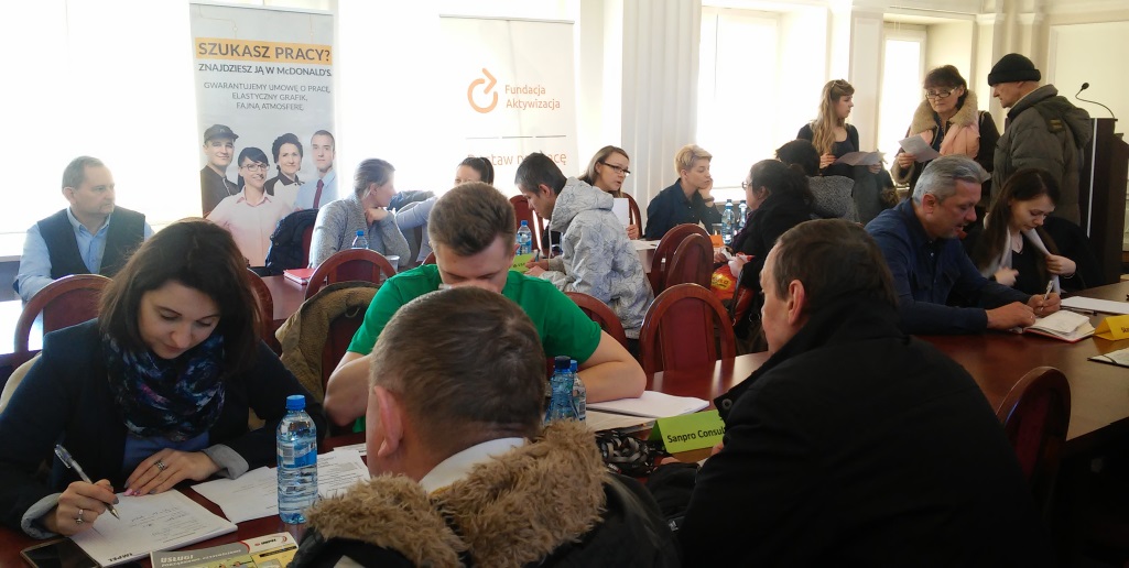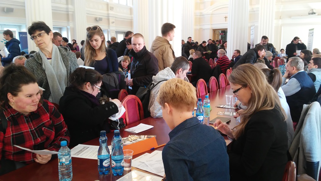 Giełda cieszyła się dużym zainteresowanym zarówno pracodawców jak i osób poszukujących pracy. Ponad 20 firm oferowało około 100 miejsc pracy, z którymi mogło się zapoznać wg naszych szacunków ok. 300 osób. Ponadto, wszystkim zainteresowanym informacji i porad udzielali przedstawiciele PUP, WUP, ZUS, PCPR, Powiatowego Zespołu ds. Orzekania o Niepełnosprawności, PIP, OHP oraz naszego Oddziału.