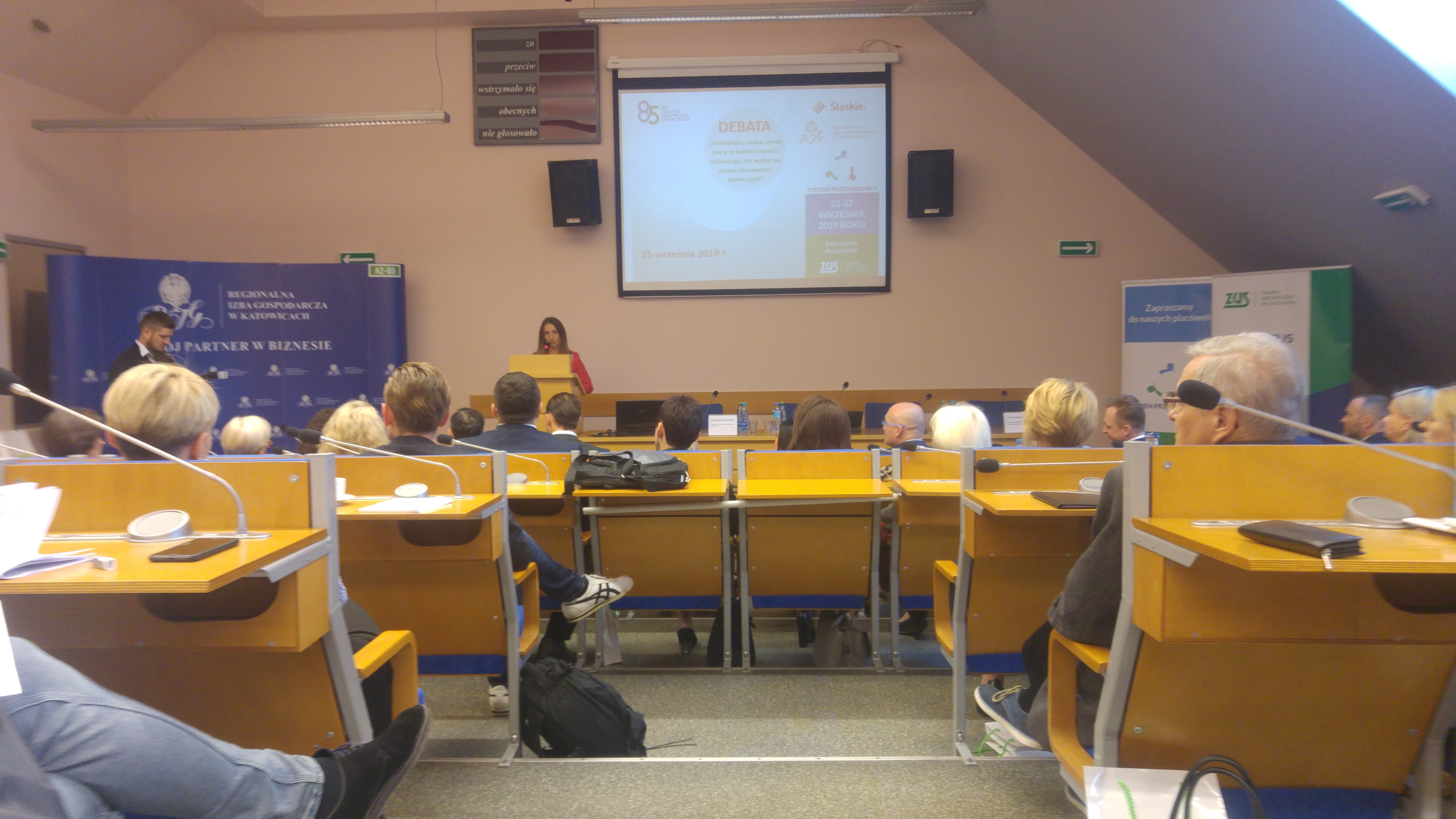 Uczestniczyliśmy w wyjątkowym wydarzeniu w debacie eksperckiej, która jest jednym z punktów Tygodnia Przedsiębiorczości zorganizowanych przez Oddział ZUS w Chorzowie. Debata pod hasłem „Demografia, nauka, rynek pracy w świetle nowych technologii i ich wpływ na system ubezpieczeń społecznych” zorganizowana została 25 września br. w siedzibie Regionalnej Izby Gospodarczej w Katowicach. Patronat nad wydarzeniem objął Jakub Chełstowski Marszałek Województwa Śląskiego.