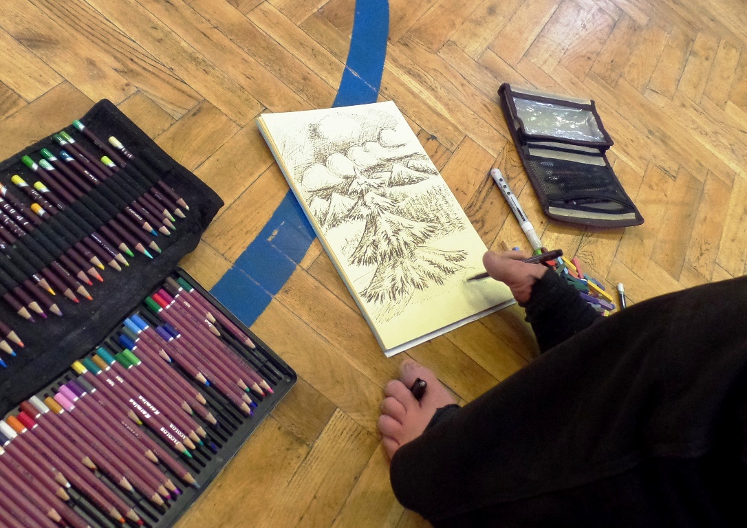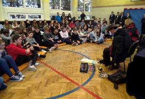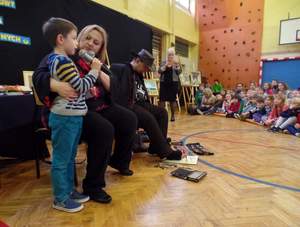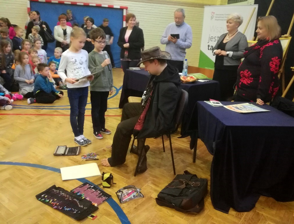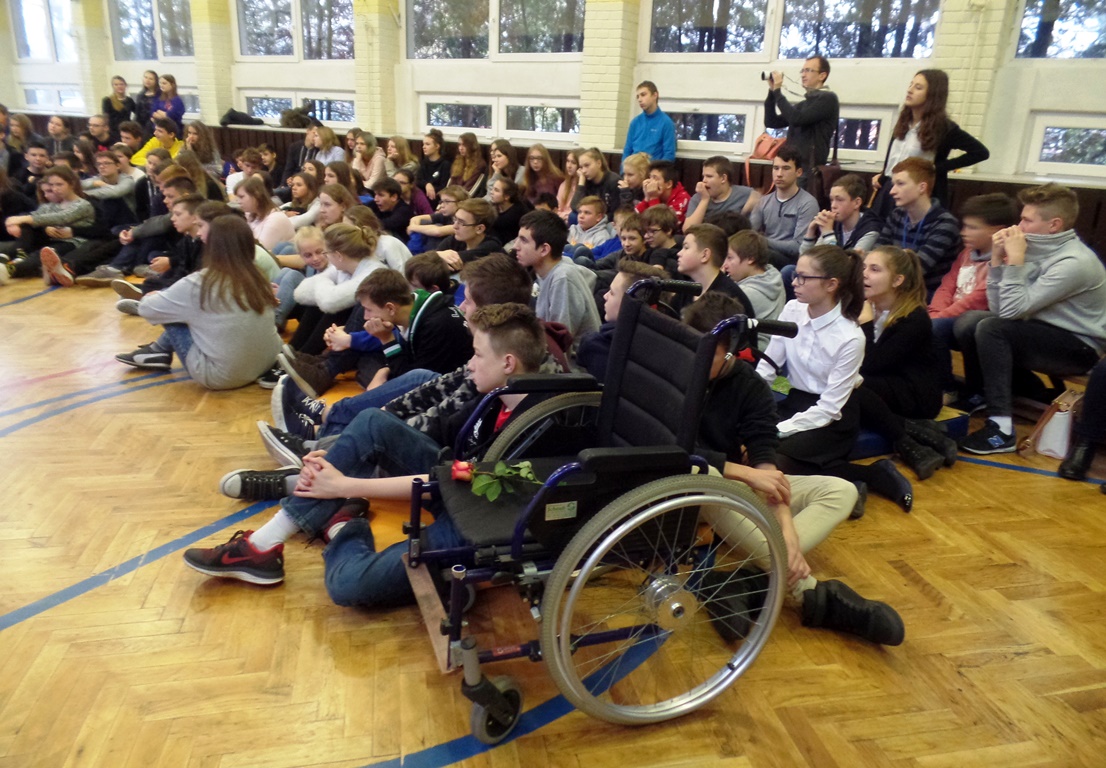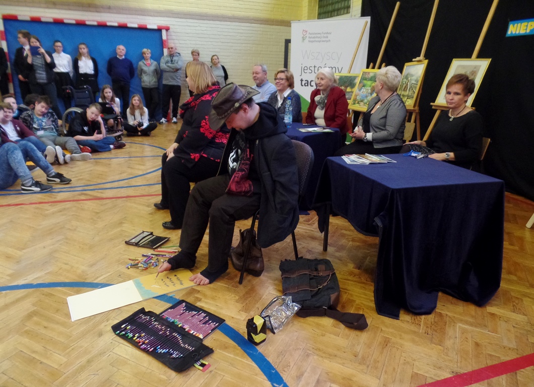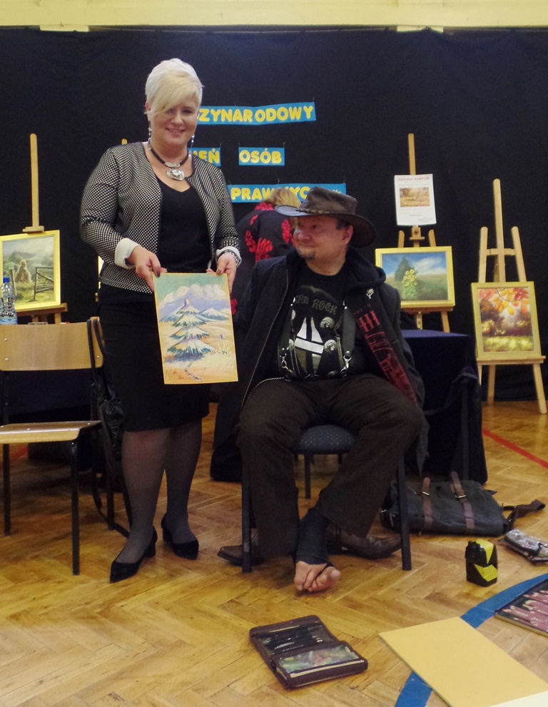 Podczas kilkugodzinnej wizyty niezwykli goście opowiadali uczniom o początkach przygody z malarstwem, prowadzeniu samochodu nogami, codziennym życiu, pokonywaniu barier i o pięknych przyjaźniach. Dzieci przyglądały się niezwykłej technice malarskiej i z zaciekawieniem zadawały pytania. W trakcie spotkania powstały prace, które artysta tradycyjnie zostawił w miejscu ich namalowania.