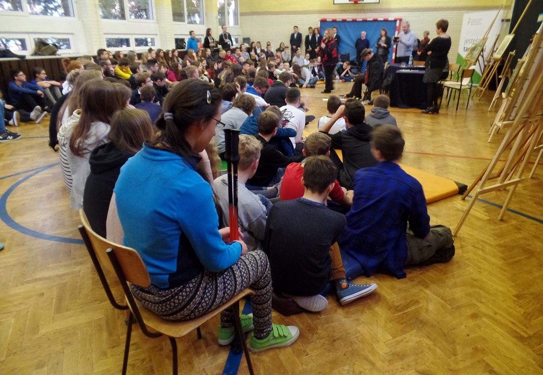 Marta Mordarska – dyrektor Oddziału Małopolskiego PFRON podczas wizyty w szkole przekazała dyrektor Magdalenie Mazur oraz uczniom pozdrowienia od Doroty Habich p.o. Prezesa Zarządu PFRON. W spotkaniu, które odbyło się 29 listopada br. uczestniczyli również przedstawiciele Fundacji Sztuki Osób Niepełnosprawnych oraz Rady Dzielnicy nr V w Krakowie.
