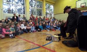 Spotkaniu w Szkole Podstawowej z Oddziałami Integracyjnymi nr 12 im. Janusza Korczaka w Krakowie towarzyszy kilkudniowa wystawa wybranych prac Stanisława Kmiecika.