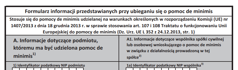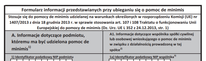 Wzór formularza informacji przedstawianych przy ubieganiu się o pomoc de minimis (INF-O-P-dM):