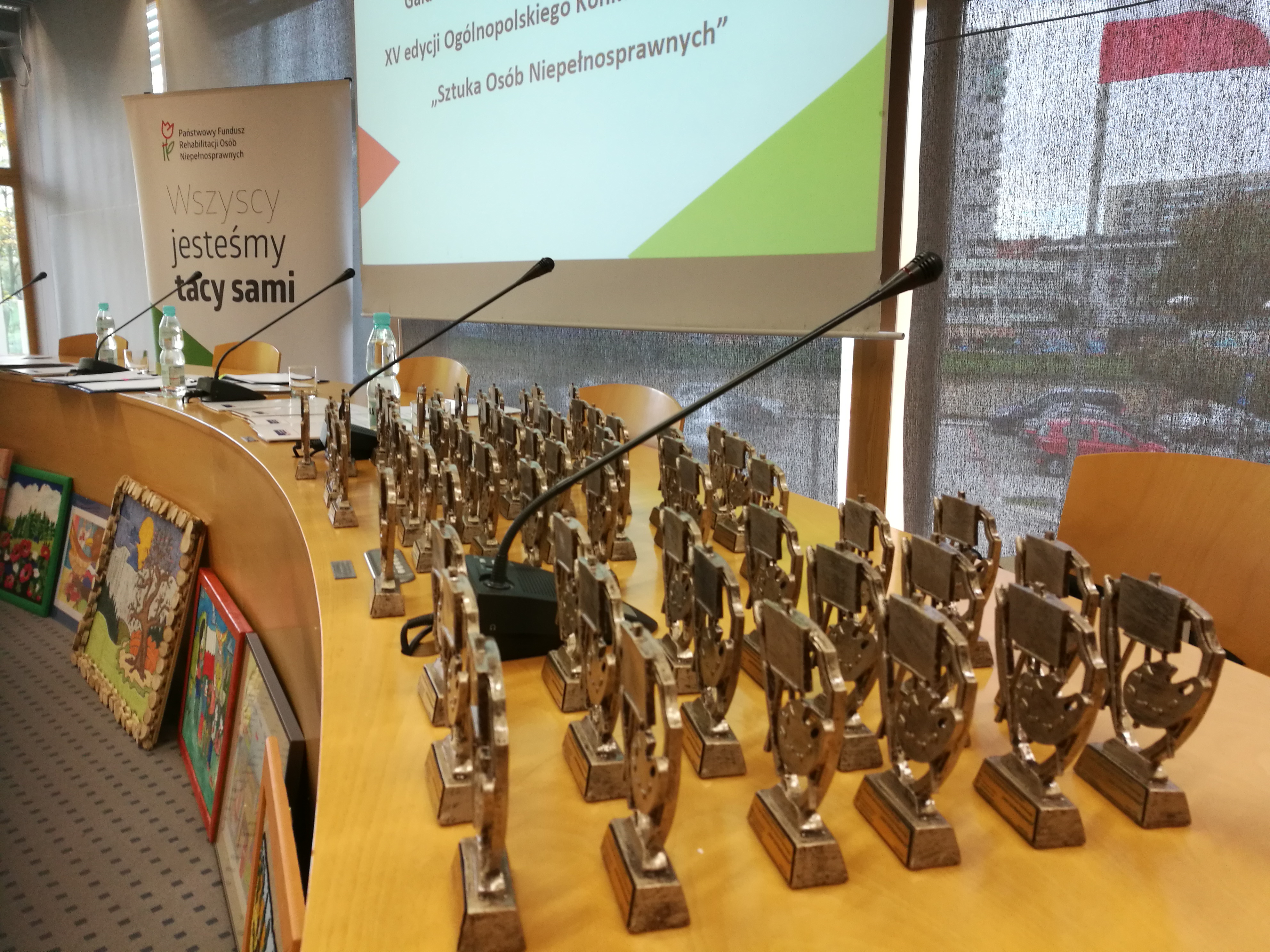 Pokaż zdjęcie Statuetki dla uczestników opolskiego etapu XV Ogólnopolskiego Konkursu Plastycznego „Sztuka Osób Niepełnosprawnych”