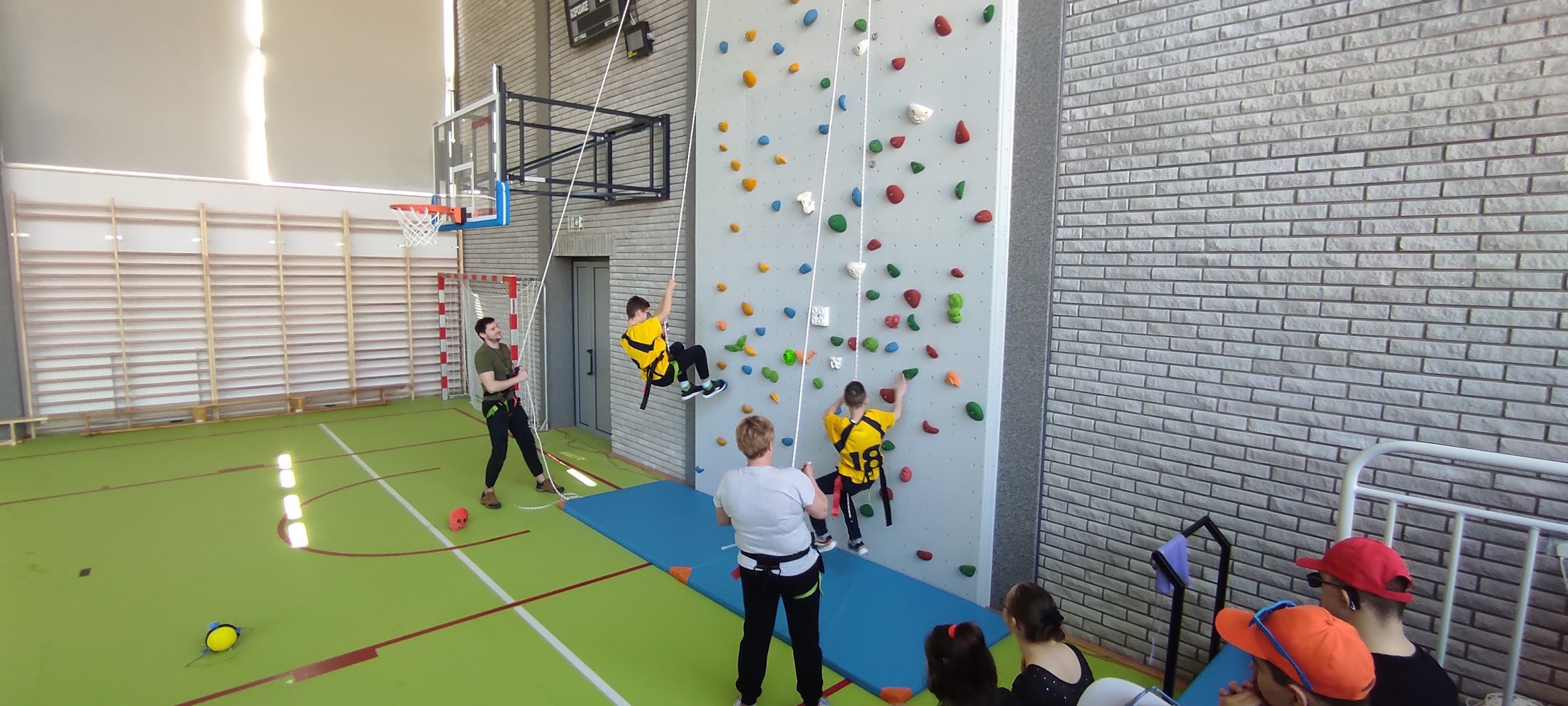 Na sali gimnastycznej mogą odbywać się jednocześnie zajęcia dwóch grup ćwiczących. Salę wyposażono w boisko do siatkówki i boisko do koszykówki, drabinki gimnastyczne, bramki do piłki ręcznej, trybunę składaną, kotarę wydzielającą, tablicę wyników, ściankę wspinaczkową, zestaw do BOCCIA, zestaw audio do nagłośnienia oraz przenośną scenę. Salę do gimnastyki korekcyjnej wyposażono w drabinki przyścienne, ławeczki gimnastyczne, lustro na ścianie. Okładziny ścian groty solnej wykonano z bloków solnych. Zamontowano, także generator aerozoli solnych.