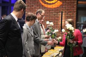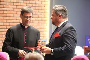 Dyrektor Caritas Archidiecezji Gdańskiej ks. Janusz Steć podziękował wszystkim osobom zaangażowanym w budowę ośrodka wręczając okolicznościowe statuetki.