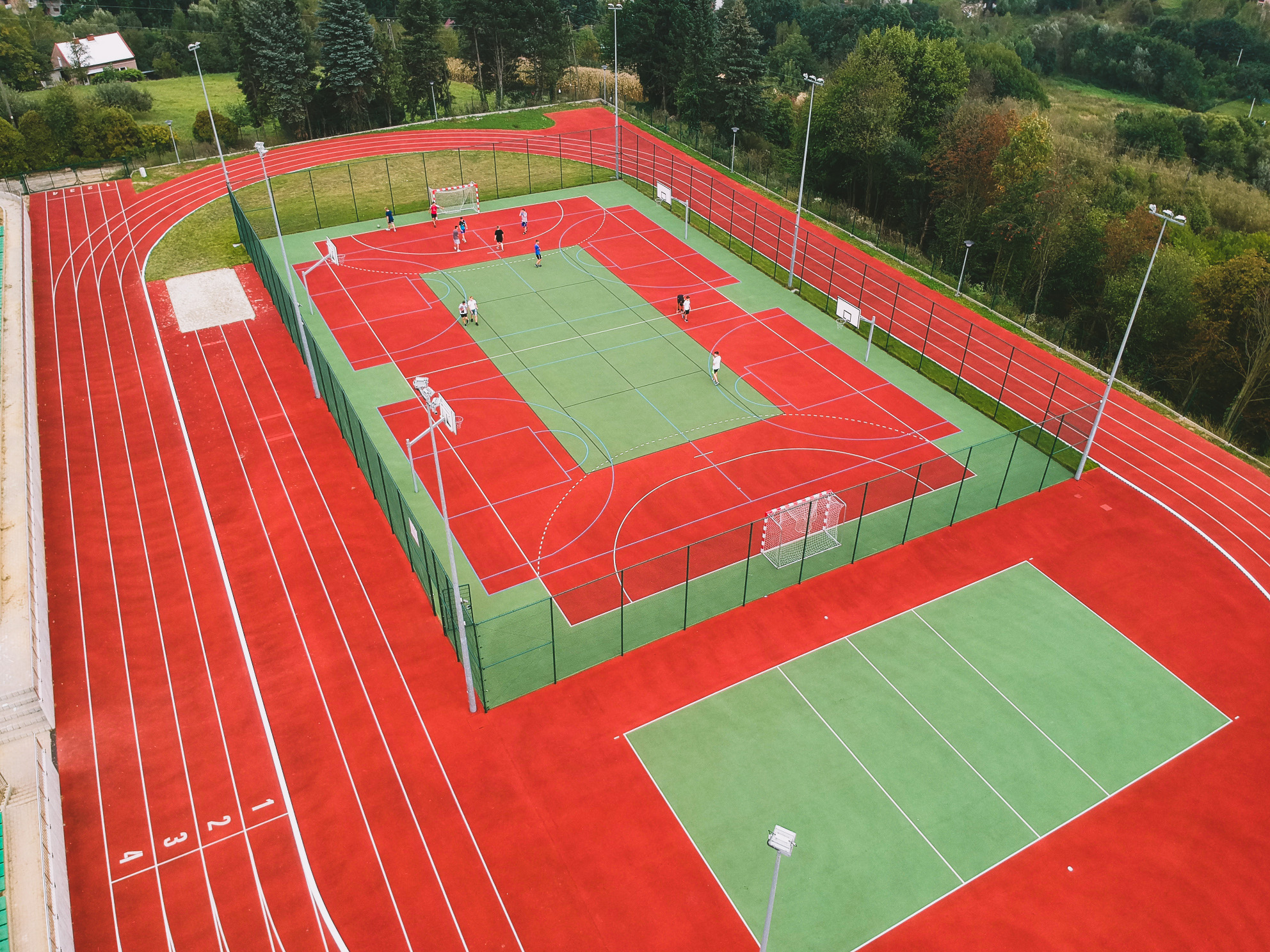 Ta imponująca inwestycja kosztowała 2,55 mln zł. Objęła przebudowę istniejącego terenu z przeznaczeniem na bieżnię 4-torową, okrężną (200 m) i prostą (100 m), boisko wielofunkcyjne do gry w koszykówkę, tenisa i piłkę ręczną, skocznię wzwyż z boiskiem do siatkówki, skocznię do skoku w dal i trójskoku, rzutnię do pchnięcia kulą. Poza tym powstało oświetlenie boisk i monitoring, ciągi piesze z miejscami siedzącymi dla widzów i podjazdy dla niepełnosprawnych.