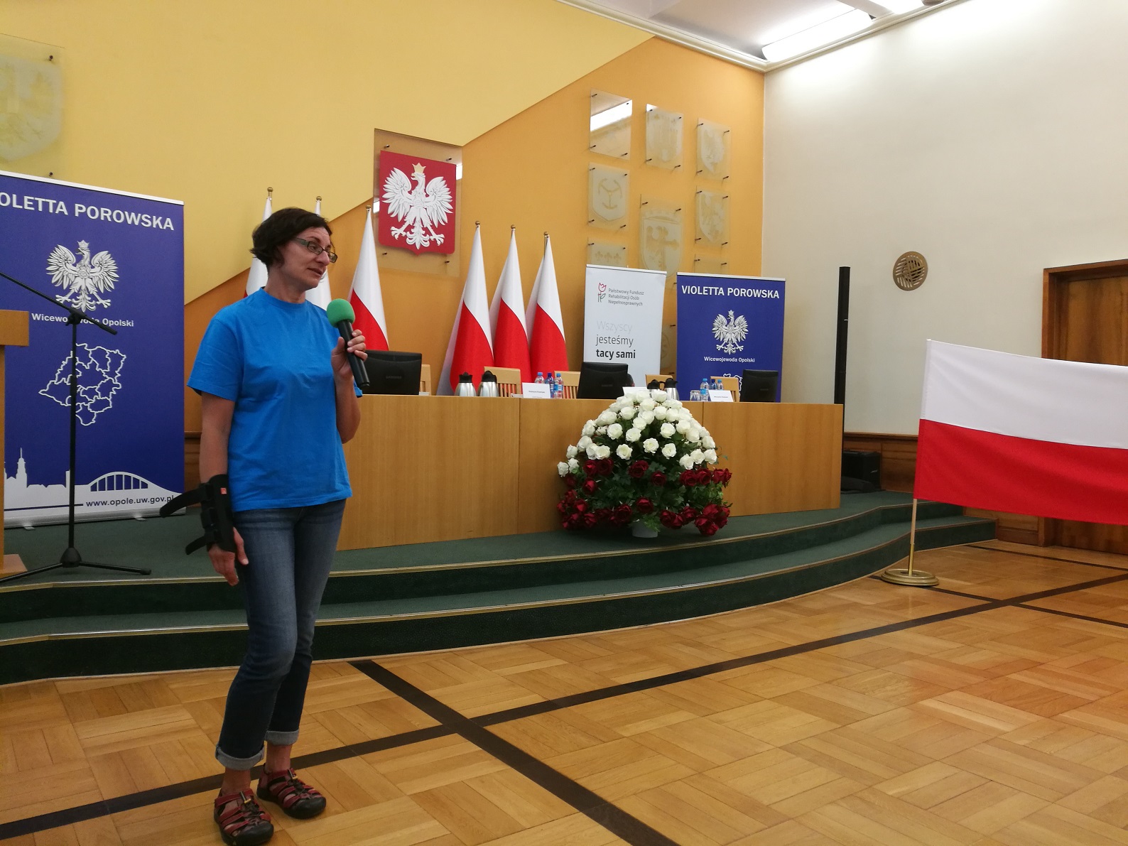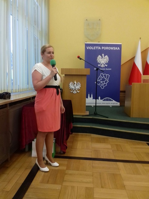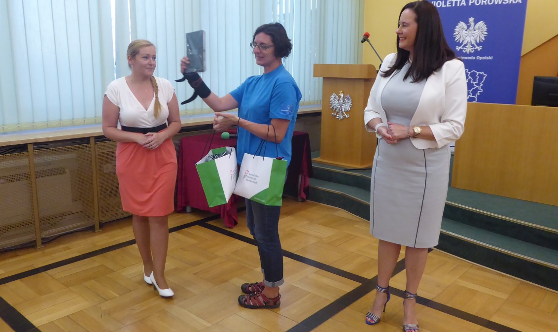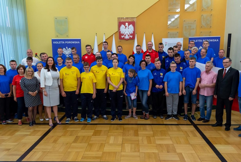 Uroczyście olimpijczyków żegnali Violetta Porowska - wicewojewoda opolski, Mieczysław Wojtaszek - Pełnomocnik Wojewody Opolskiego do Spraw Osób Niepełnosprawnych oraz Beata Piaszczyk i Maria Fikus – przedstawicielki Oddziału Opolskiego Państwowego Funduszu Rehabilitacji Osób Niepełnosprawnych.