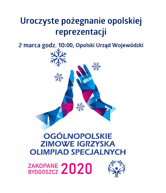 Podobnie jak w 2018 roku uroczyście pożegnamy zawodników i trenerów przed wyjazdem na zawody. Opolska reprezentacja liczy 51 zawodników oraz 13 trenerów. W trakcie spotkania złożymy również gratulacje medalistom ubiegłorocznych Światowych Letnich Igrzysk Olimpiad Specjalnych w Abu Dhabi 2019.