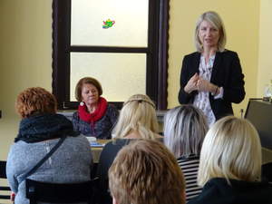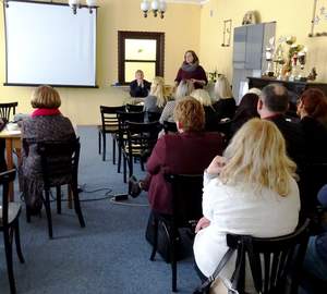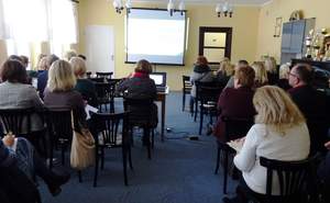 Drugą część spotkania zdominował temat dotyczący aktywizacji zawodowej uczestników WTZ-ów. Prezes Fundacji na Rzecz Osób Niepełnosprawnych „Arkadia” – Marta Hewelt - w bardzo ciekawy sposób opowiadała o modelu zatrudniania wspomaganego (opartego na modelu PFRON), o koalicji powiatowej oraz przedstawiła działania Fundacji, która, współpracując z WTZ-em „Arkadia”, wprowadza na rynek pracy osoby z niepełnosprawnością intelektualną, wspierając je w osiąganiu samodzielności i niezależności życiowej na wszelkich etapach życia.