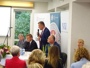 Kolejnym rozmówcą był Wicewojewoda Łódzki Karol Młynarczyk, który przedstawił sytuację w województwie łódzkim w zakresie działań podejmowanych na rzecz osób niepełnosprawnych. Następnie głos przekazano Dyrektorowi Oddziału Łódzkiego Władysławowi Skwarce, który zaprezentował dane statystyczne z województwa łódzkiego w zakresie przekazywania środków finansowych PFRON w naszym regionie konkretnym podmiotom na realizację zadań ustawowych i programów celowych ukierunkowanych na rehabilitację zawodową i społeczną. Podkreślił, iż duża część środków Funduszu trafia do pracodawców zatrudniających osoby niepełnosprawne, ale też w ramach algorytmu, do jednostek samorządu terytorialnego.