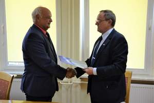 Zbigniew Duda Starostwa Ostrowiecki w dniu 06 września 2017 r. otrzymał z rąk Dyrektora Oddziału Świętokrzyskiego Państwowego Funduszu Rehabilitacji Osób Niepełnosprawnych umowę potwierdzającą przyznanie dofinansowania w łącznej kwocie 136 660,38 zł, które przeznaczone zostanie na zakup i montaż windy zewnętrznej w Niepublicznej Placówce Opiekuńczo-Wychowawczej Zgromadzenia Sióstr Franciszkanek Rodziny Maryi w Ostrowcu Świętokrzyskim oraz zakup mikrobusu dla podopiecznych Niepublicznej Placówki Opiekuńczo-Wychowawczej w Małachowie, prowadzonej przez Stowarzyszenie RAZEM Na Rzecz Osób Niepełnosprawnych Umysłowo.