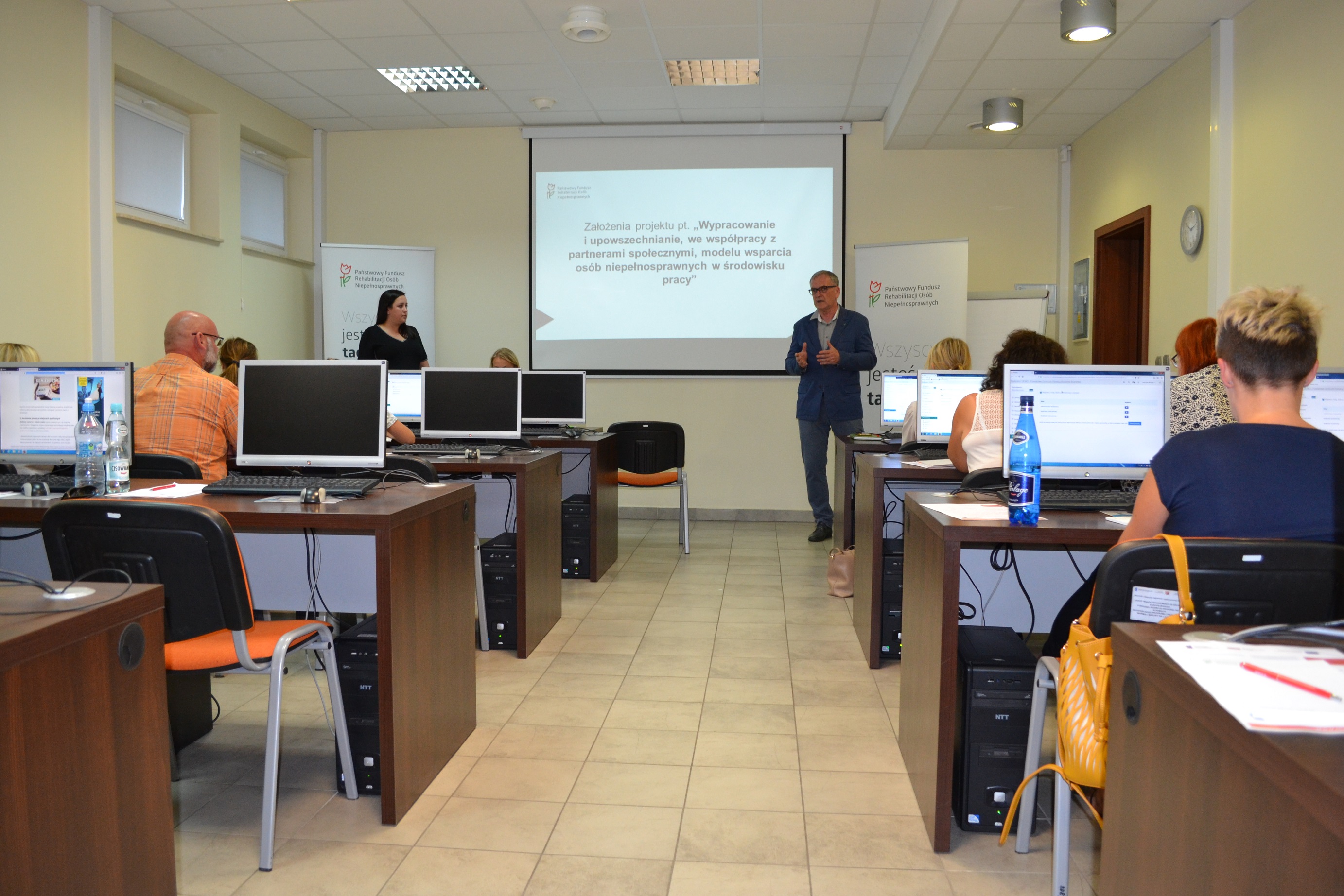 Podczas spotkania pracownicy Warmińsko-Mazurskiego Oddziału Państwowego Funduszu Rehabilitacji Osób Niepełnosprawnych przedstawili również informację na temat projektu pn. „Wypracowanie i upowszechnianie, we współpracy z partnerami społecznymi, modelu wsparcia osób niepełnosprawnych w środowisku pracy”, który realizuje Fundusz we współpracy z Centralnym Instytutem Ochrony Pracy.