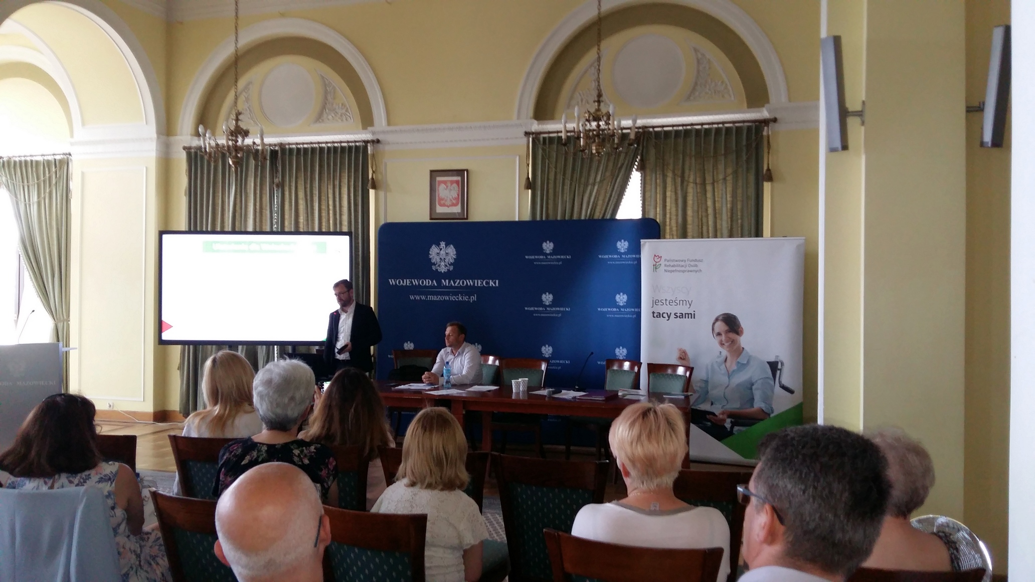 Zgromadzonych uczestników powitali: Dorota Habich – wiceprezes Zarządu PFRON oraz Jan Myszak – Pełnomocnik Wojewody ds. Rozwoju Społeczeństwa Obywatelskiego.