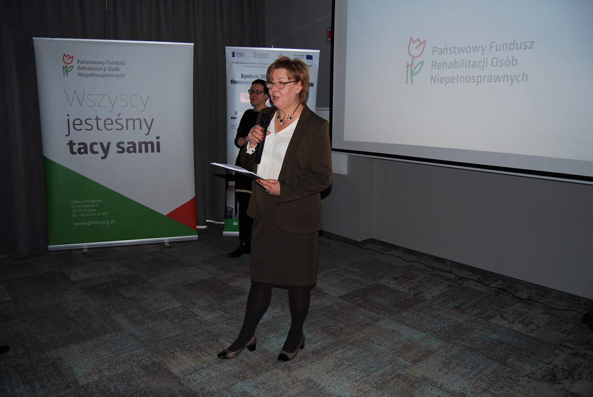 Marta Mordarska, Dyrektor Małopolskiego Oddziału PFRON otwarła we wtorek 11 grudnia b.r. dwudniową, czwartą już małopolską konferencję pn. „Międzyinstytucjonalna współpraca w obszarze wsparcia osób z niepełnosprawnością”. Do udziału w Wydarzeniu organizowanym przez Małopolski Oddział PFRON zaprosiliśmy dyrektorów i pracowników PCPRów, gminnych i miejskich ośrodków pomocy społecznej a także wydziałów edukacji i inwestycji starostw powiatowych.