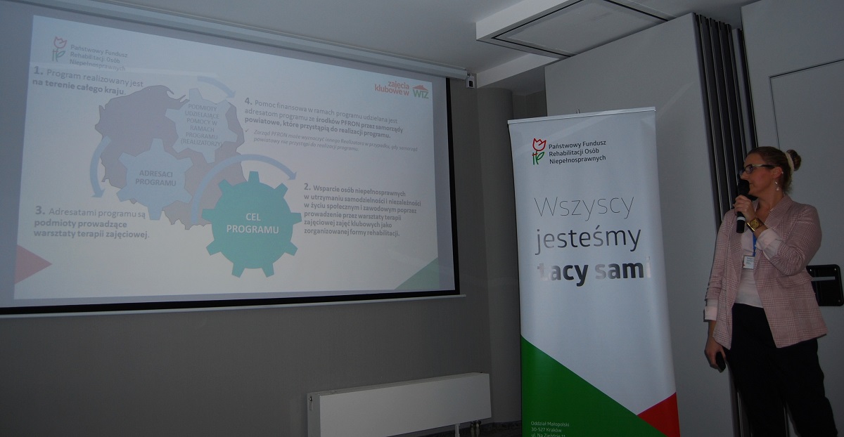 W panelu dotyczącym rehabilitacji zawodowej znalazło się miejsce na prelekcje pracowników Oddziału, ale nie zabrakło także zaproszonych gości - pani Danuta Skopińska, Kierownik Działu Rehabilitacji Społecznej PCPR w Krakowie wraz z panią Wioletą Więckowską opowiedziały o Module II programu Aktywny Samorząd. O kompleksowym wspieraniu absolwentów w wejściu na otwarty rynek pracy mówiła Pani Monika Cyboran-Trzebińska, Prezes Zarządu Fundacji Sustinae, która realizuje program „Absolwent”.