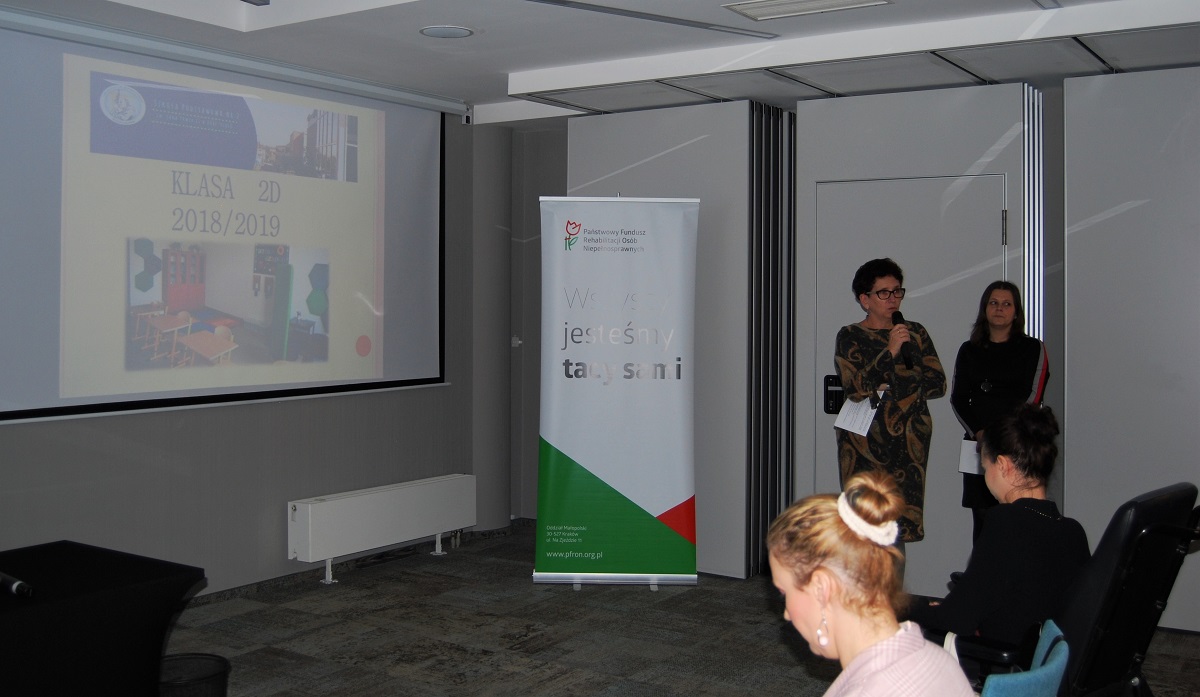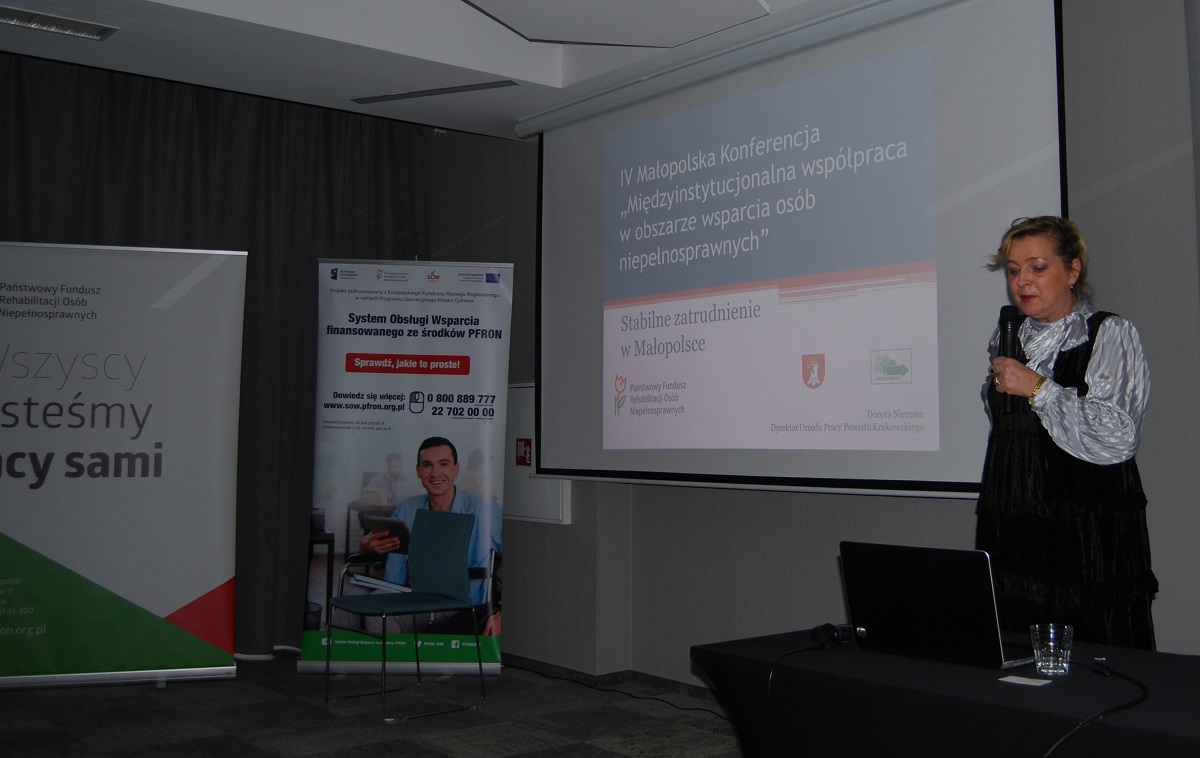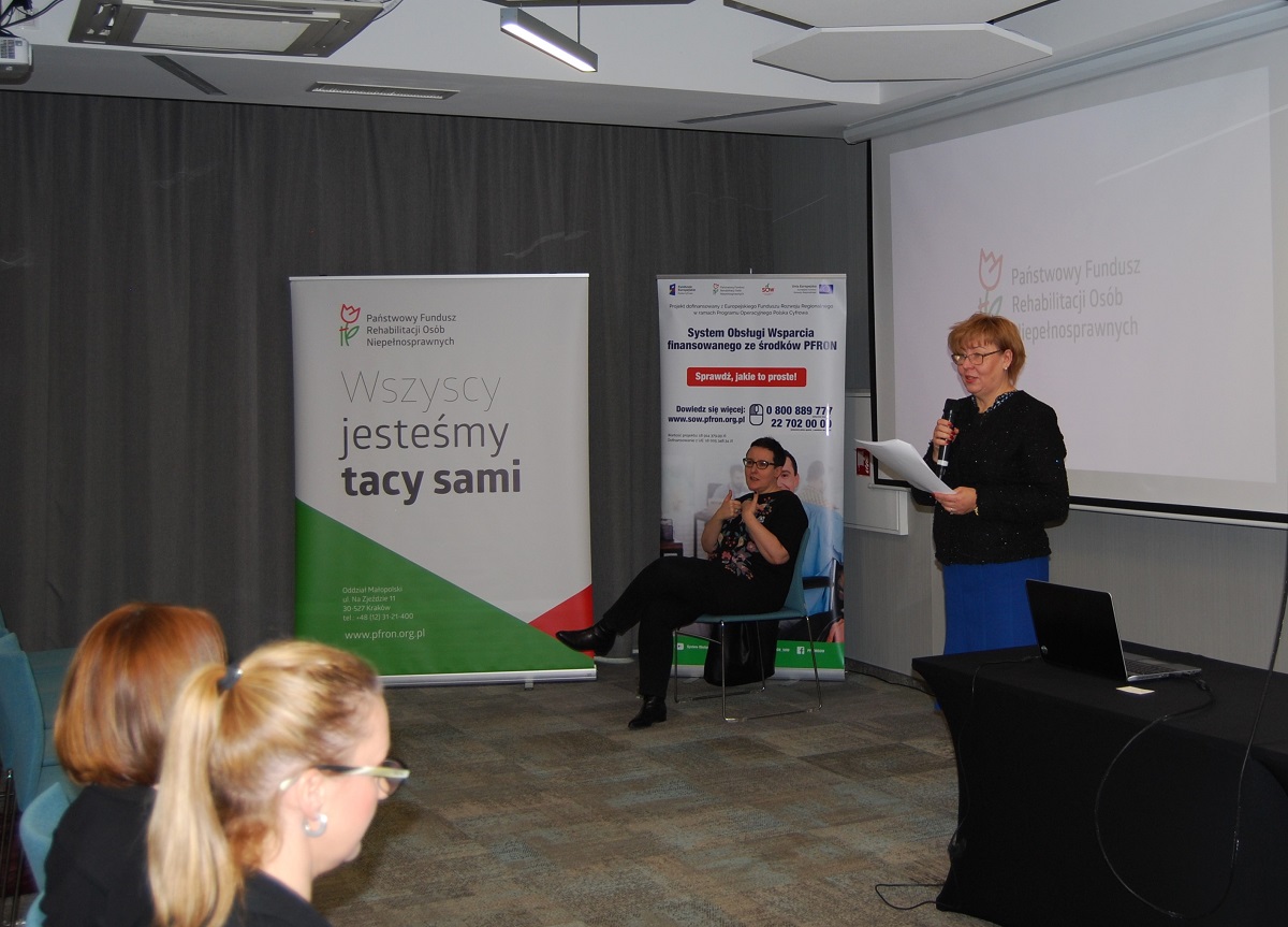 Drugi dzień konferencji był okazją do poruszenia m.in. tematów związanych z realizacja programu Stabilne Zatrudnienie, o czym opowiedziała Pani Dorota Niemiec, Dyrektor Urzędu Pracy Powiatu Krakowskiego a także Pani Ewa Piątkowska ze Starostwa Powiatowego w Nowym Targu. Wciąż nową, lecz niezwykle rozwojową i ważną kwestię wdrażania programu SOW przybliżały Panie Prelegentki z Biura Funduszu - Anna Światlak oraz Katarzyna Matusz-Braniecka. Konferencję domknęliśmy prezentacją Pani Katarzyny Balwierz oraz Pana Artura Thena z Fundacji Instytut Rozwoju Regionalnego na temat wdrażania Konwencji o prawach osób z niepełnosprawnościami w Małopolsce. Raporty podsumowujące monitoring przeprowadzany w 54 placówkach pokazały, jak wiele jest jeszcze do zrobienia.