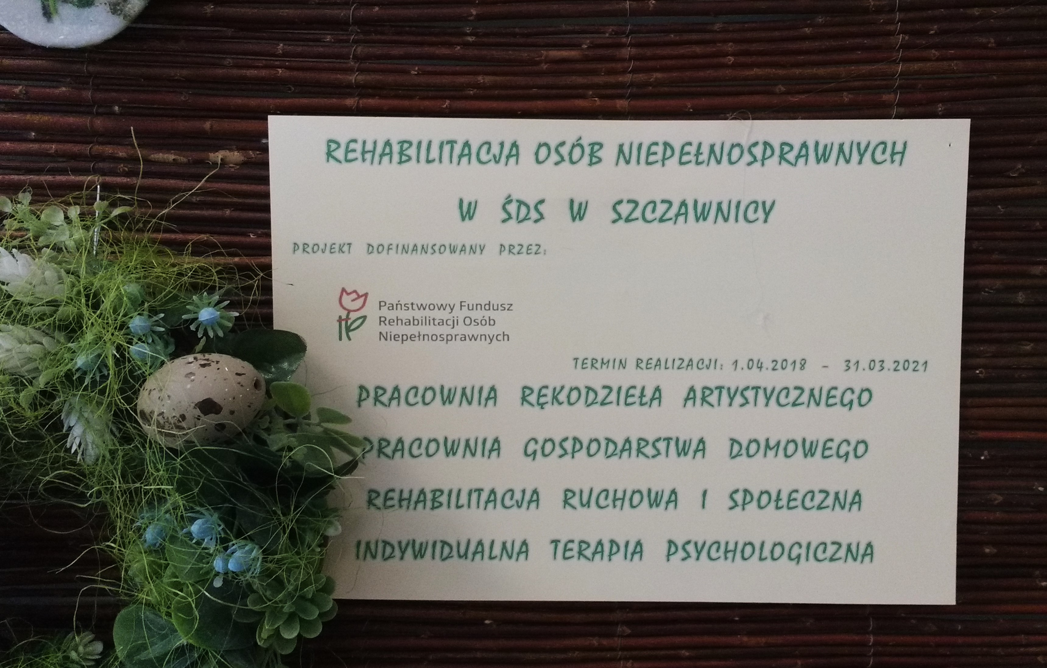 Wydarzenie zorganizowało Polskie Stowarzyszenie na Rzecz Osób z Niepełnosprawnością Intelektualną Koło w Szczawnicy w ramach projektu ”Rehabilitacja Osób Niepełnosprawnych w ŚDS w Szczawnicy” dofinansowanego ze środków PFRON. Projekt obejmuje wsparciem 24 osoby z niepełnosprawnościami dofinansowując pracownię rękodzieła artystycznego, pracownię gospodarstwa domowego, rehabilitację ruchową i społeczną oraz indywidualną terapię psychologiczną. Kwota dofinansowania ze środków PFRON w pierwszym roku realizacji projektu wyniosła 278 549,50 zł.