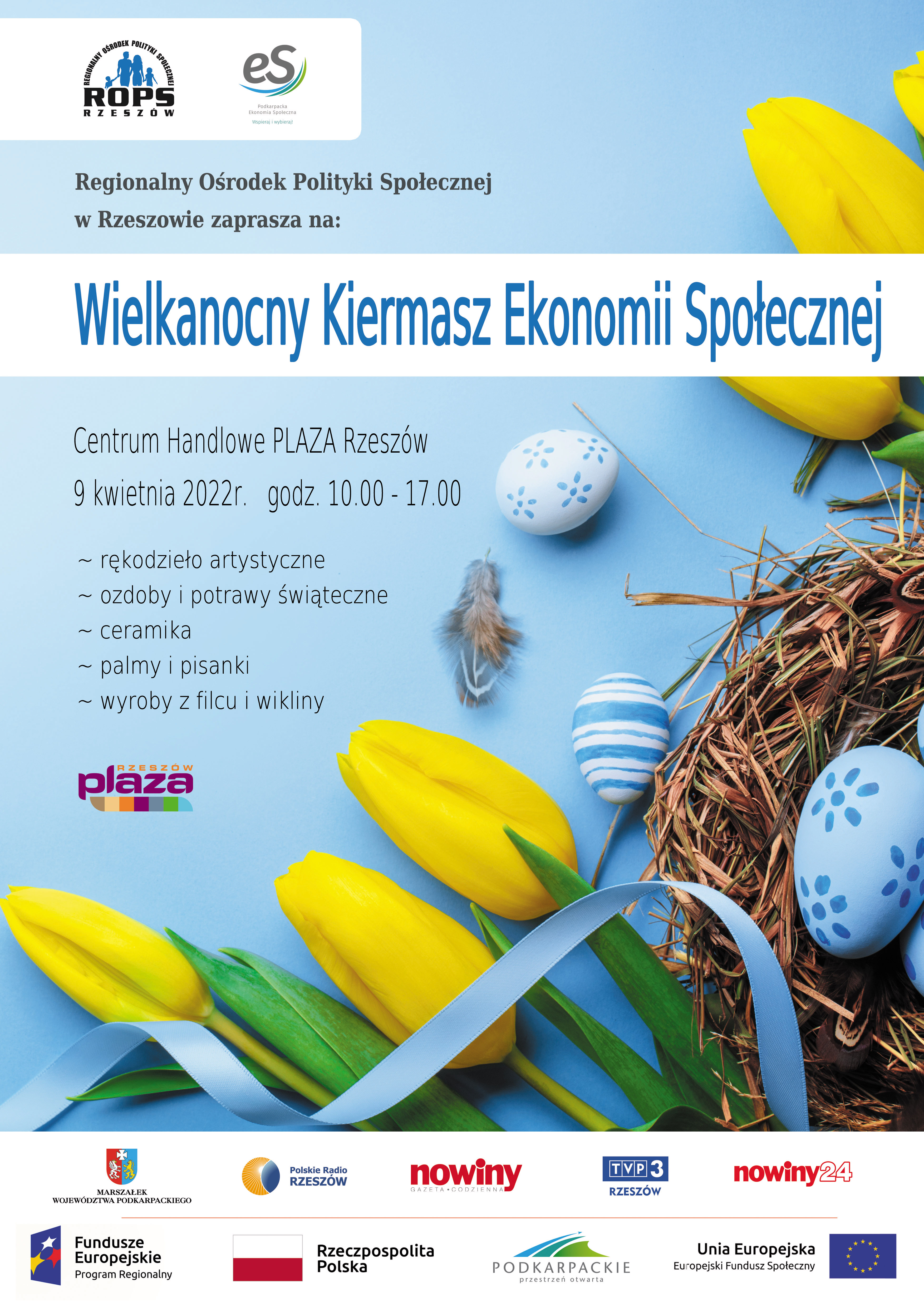 Regionalny Ośrodek Polityki Społecznej w Rzeszowie serdecznie zaprasza mieszkańców Podkarpacia na Wielkanocny Kiermasz Ekonomii Społecznej.