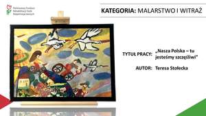 W kategorii malarstwo i witraż trzecie miejsce zdobyła Teresa Stołecka z Domu Pomocy Społecznej w Ślesinie za pracę pt.: „Nasza Polska – tu jesteśmy szczęśliwi”, natomiast wyróżnienie otrzymał Adam Budziszewski z Warsztatu Terapii Zajęciowej w Owińskach za pracę pt.: „Niepodległa od morza do Tatr”.
