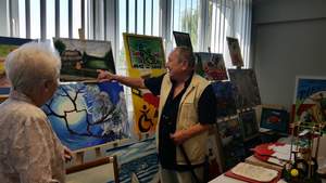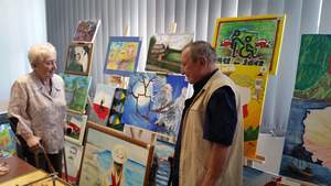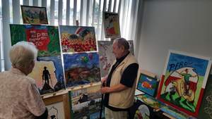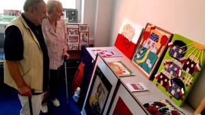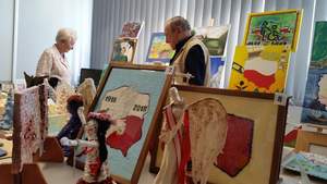 Pani Ewa wraz z Panem Henrykiem mieli okazję podziwiać, na zorganizowanej w Oddziale Wielkopolskim PFRON wystawie, dzieła sztuki zgłoszone do tegorocznej XVI edycji Konkursu Plastycznego PFRON. Prace plastyczne zostały wykonane przez osoby niepełnosprawne, mieszkańców domów pomocy społecznej oraz uczestników warsztatów terapii zajęciowej i środowiskowych domów samopomocy.