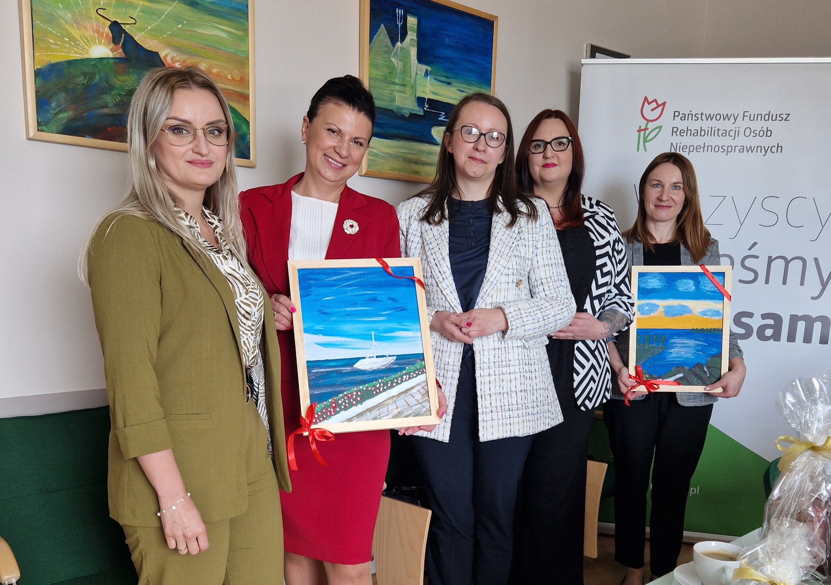 Stowarzyszenie zakończyło właśnie realizację projektu "Niepełnosprawni - sprawni inaczej" finansowanego ze środków PFRON i rozpoczyna kolejny! Ależ było nam miło przyjąć tak serdeczne podziękowania! Otrzymaliśmy wiele serdecznych słów i cudownych pamiątek – które będą nam się zawsze z Państwem kojarzyć. A największe emocje wzbudziły obrazy namalowane przez Podopiecznych Stowarzyszenia - specjalnie dla nas! Są przepiękne! Przedstawiają morze i wakacyjne klimaty. Od razu zrobiło się bardziej wiosennie w naszym sekretariacie. Takie chwile są dla nas bardzo ważne. Dają nam siłę i energię do dalszego działania i pomagania.