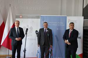 Debatę w Pomorskim Urzędzie Wojewódzkim poprzedził briefing prasowy z udziałem Ministra Pawła Wdówika, Wojewody Pomorskiego Dariusza Drelicha oraz Dyrektora Oddziału Pomorskiego PFRON Dariusza Majorek.
