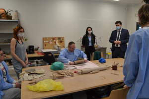 Dyrektor Warmińsko-Mazurskiego Oddziału Mateusz Szkaradziński na zaproszenie Stowarzyszenia zobaczył Warsztaty podczas codziennej pracy. Spotkał się z uczestnikami i pracownikami. Odwiedził też Zespół Placówek Edukacyjnych przy ulicy Turowskiego. Spotkanie z przewodniczącą Stowarzyszenia było okazją do rozmowy o nowych inicjatywach organizacji.